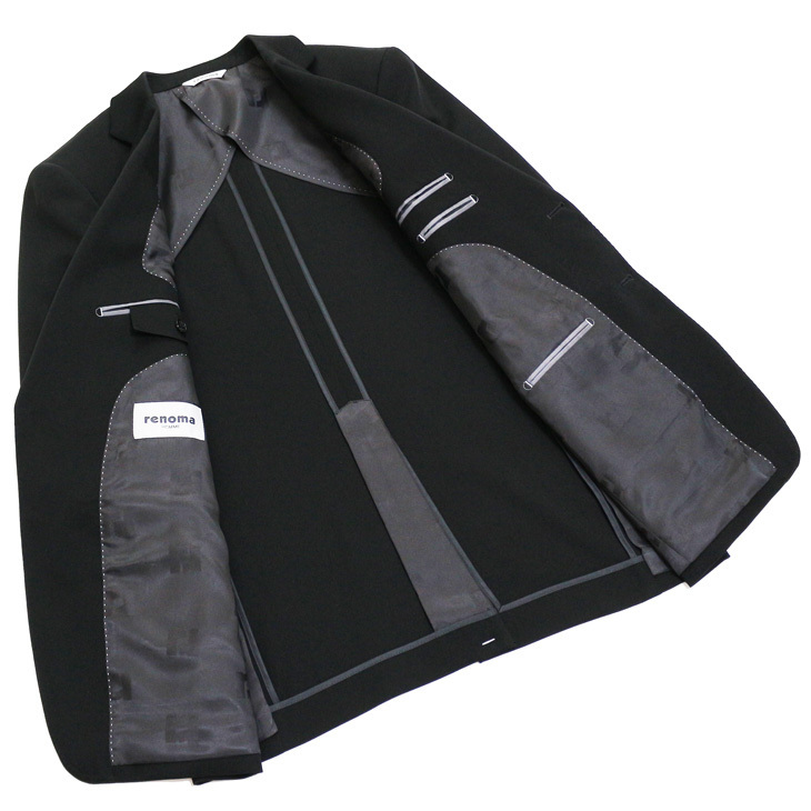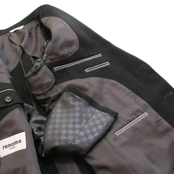 | ディテール 詳細/生産 | (上着)背抜き、観音開き、パイピング補強、お台場仕立て、汗止め 各部ポケットサイドDカン補強、表地と裏地の切り返しにピンポンステッチ、 袖口4つボタン、ボタンX止め、「renoma」刻印ボタン、袖口裏額縁仕上げ、 内装:ラペル毛芯、各部バブリング防止に接着芯にて補強 (ズボン)べレックスαにてズボンサイドよりウエスト±6cm調整可能 マーベルト「renoma」ブランドネーム刻印のシャツ滑り止め 股ずれ防止チョーシック付き 生産国:中国製 *仕上げのプレスは、国内で施しております。 | |||||||||||