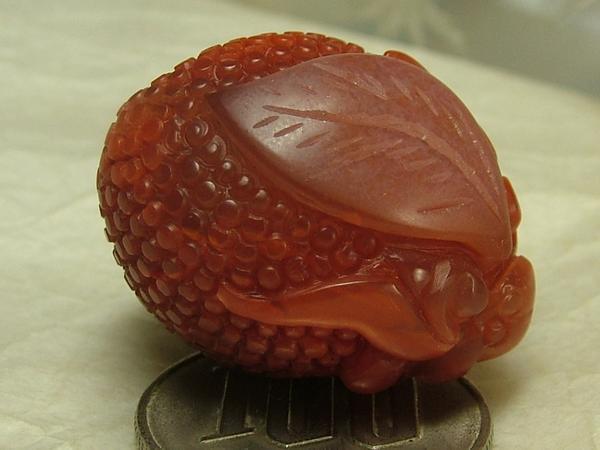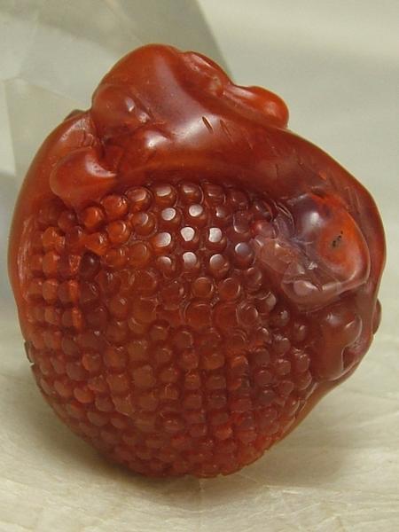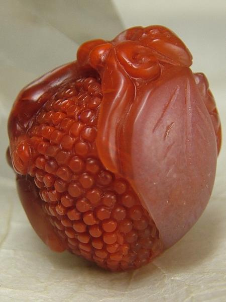 ●商品説明● | サイズ:29×25×22mm 重さ:18.5g 落ち着いた大人の雰囲気、温かみのある南紅瑪瑙(ナンホンメノウ)の彫り細工。中国の縁起柄、茘枝(ライチ)と貔貅(ひきゅう)が彫り込まれています。この紅色は、数ある赤瑪瑙(レッドアゲート)の中で「火焔紅(ホウエンホン)」と呼ばれる、燃え盛る炎の様な紅色が特長の希少石です。石コレクションや置物に。上部に貫通穴が有るのでペンダントトップや下げ飾りにもなります。 yo.ys.r.a ●南紅瑪瑙(ナンホンメノウ)は紀元前から中国で使われていた歴史ある石です。中国特有の瑪瑙と言われ、清の末期までに鉱山がほぼ枯竭したと伝えられていましたが20世紀末期、四川省の涼山州でも発見され、南紅瑪瑙のブームが起きました。鮮やかな色と産出量が極めて少なく、良品質のものは北京故宮博物館や雲南博物館などに国宝として収蔵されるため、その価値は年々上がっています。 ●瑪瑙は心と体の調和を促進、ストレスやプレッシャー軽減するなどと信じられ、古来から癒しの石として仏教徒に好まれています。仏教の七宝の一つ「赤珠(赤真珠)」は、この南紅瑪瑙を指すと言われます。チベットの僧侶達に深海珊瑚の代品として好まれていました。 | |