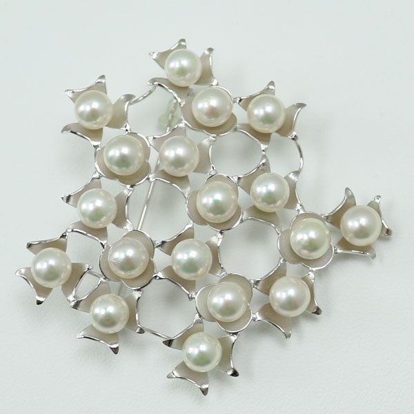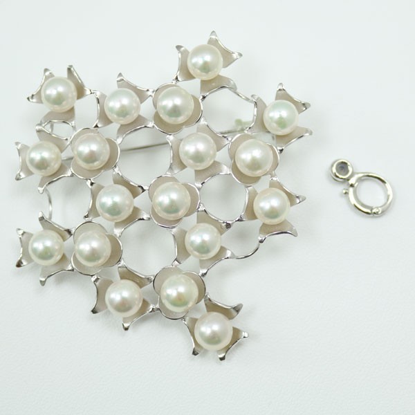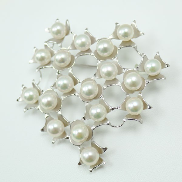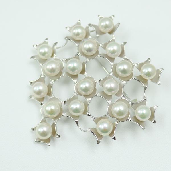 伊勢志摩産あこや7.0-7.5mmパールを18pcs使ったシルバーブローチです。 |