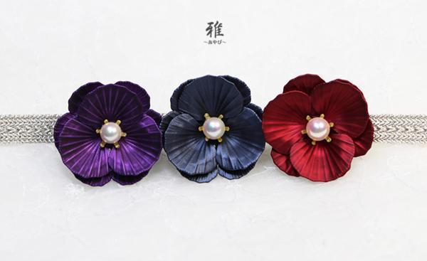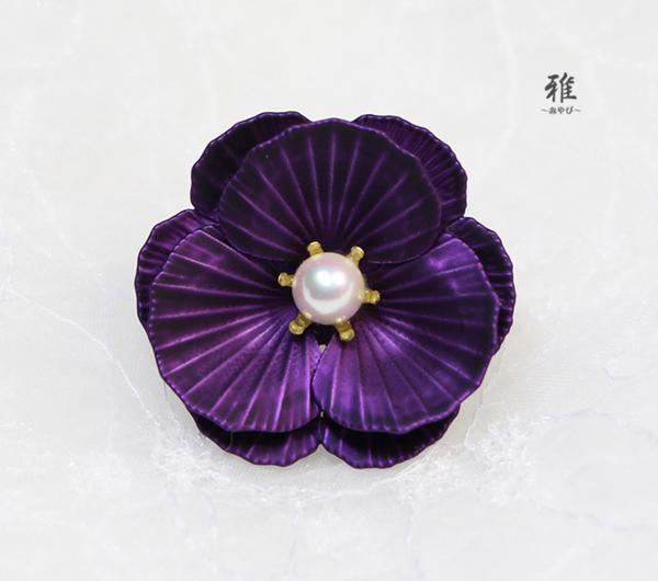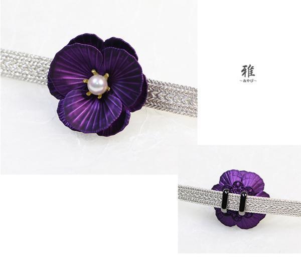 【 雅 】 三分紐専用♪本紫色の美*パンジー あこや本真珠 帯留め