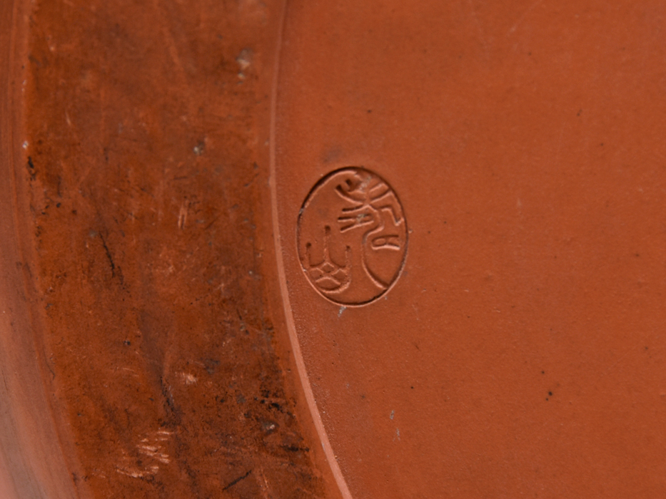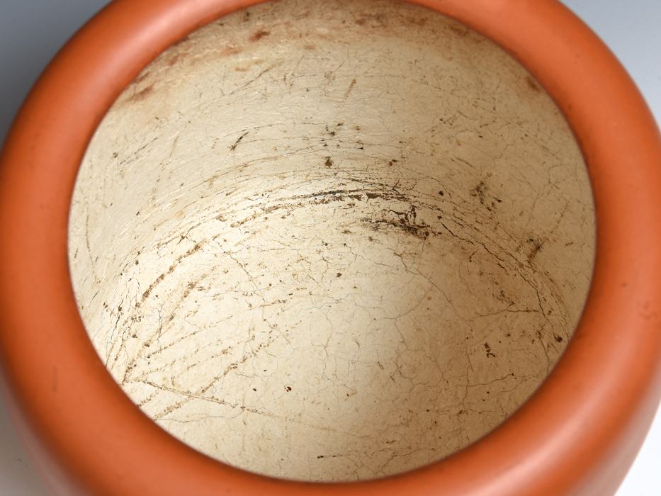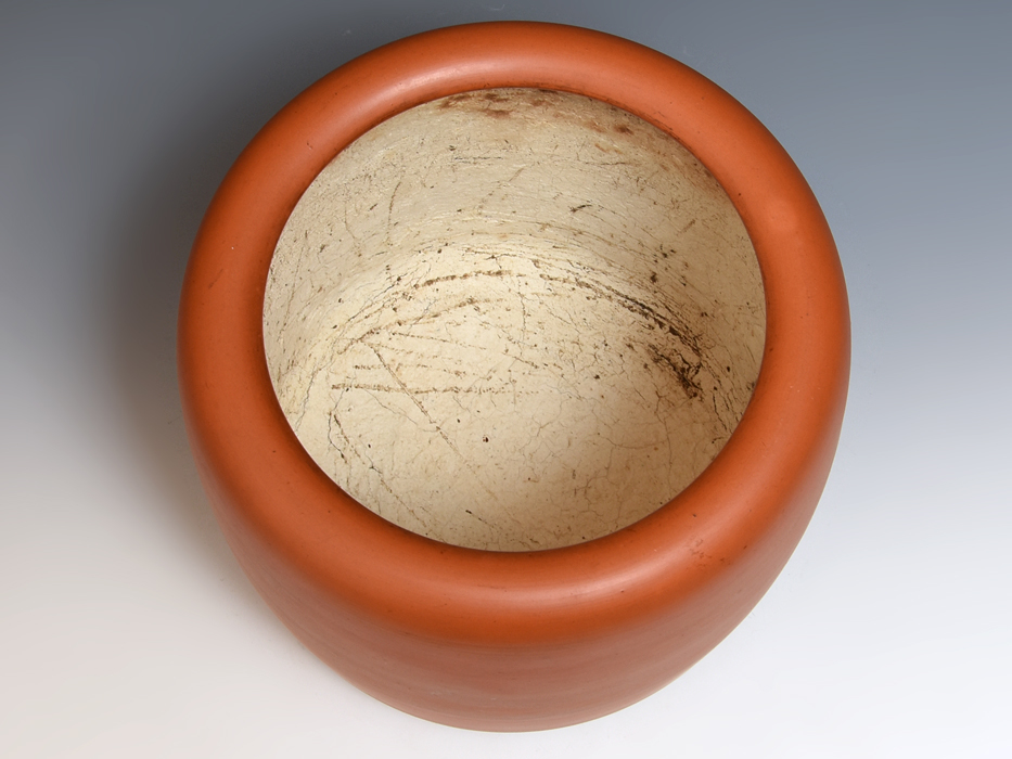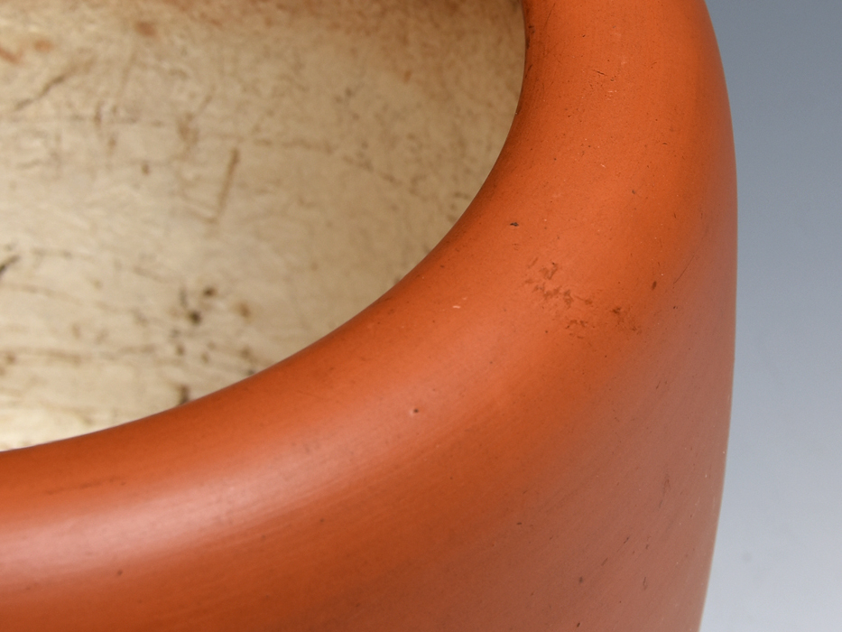 龍山造、火鉢です。 時代物のよく使い込まれた火鉢で、よい朱泥の味わいが魅力です。 底面に「龍山」の款があります。 内側に塗られている漆喰にやや劣化がありますが(画像参照)、全体的にはアタリやカケなどなくコンディションは良好です。 ※撮影の際に生じた写り込みなどがございます。 ご理解の程よろしくお願い致します。 |