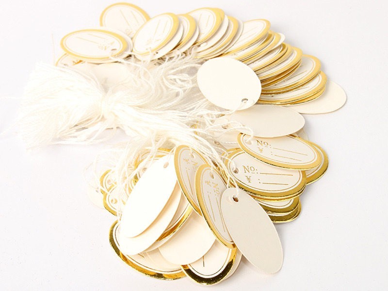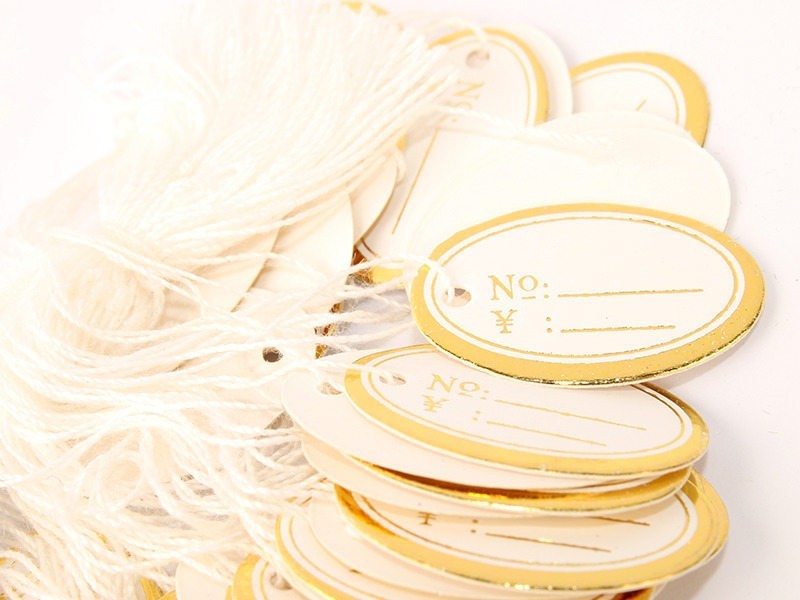 商品出品の際に便利な紐付き価格表示タグ、お得な100個入りです。