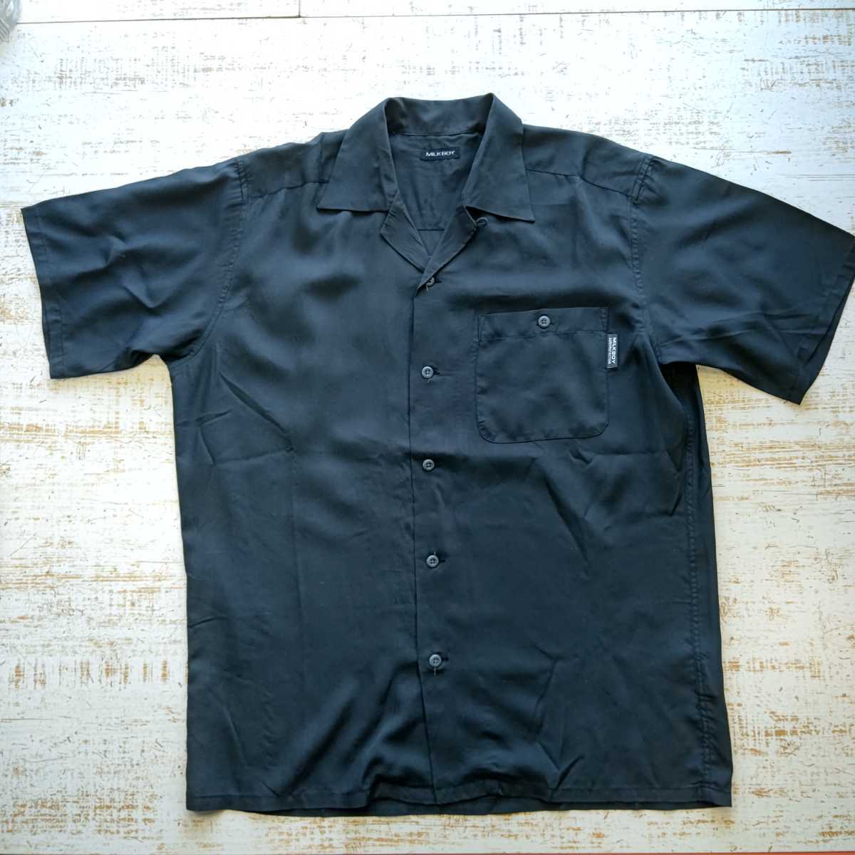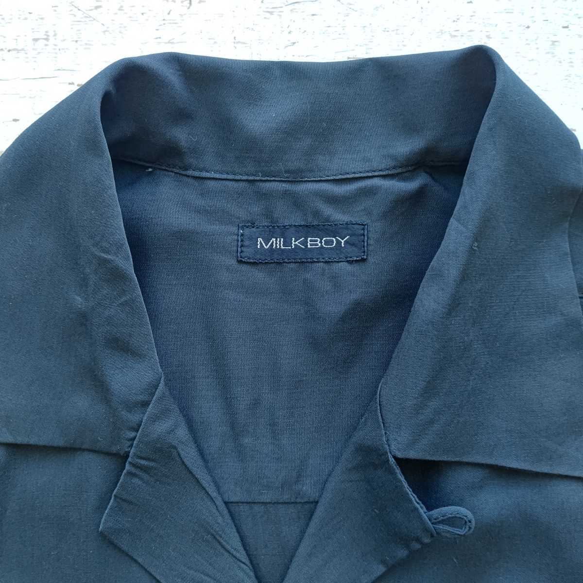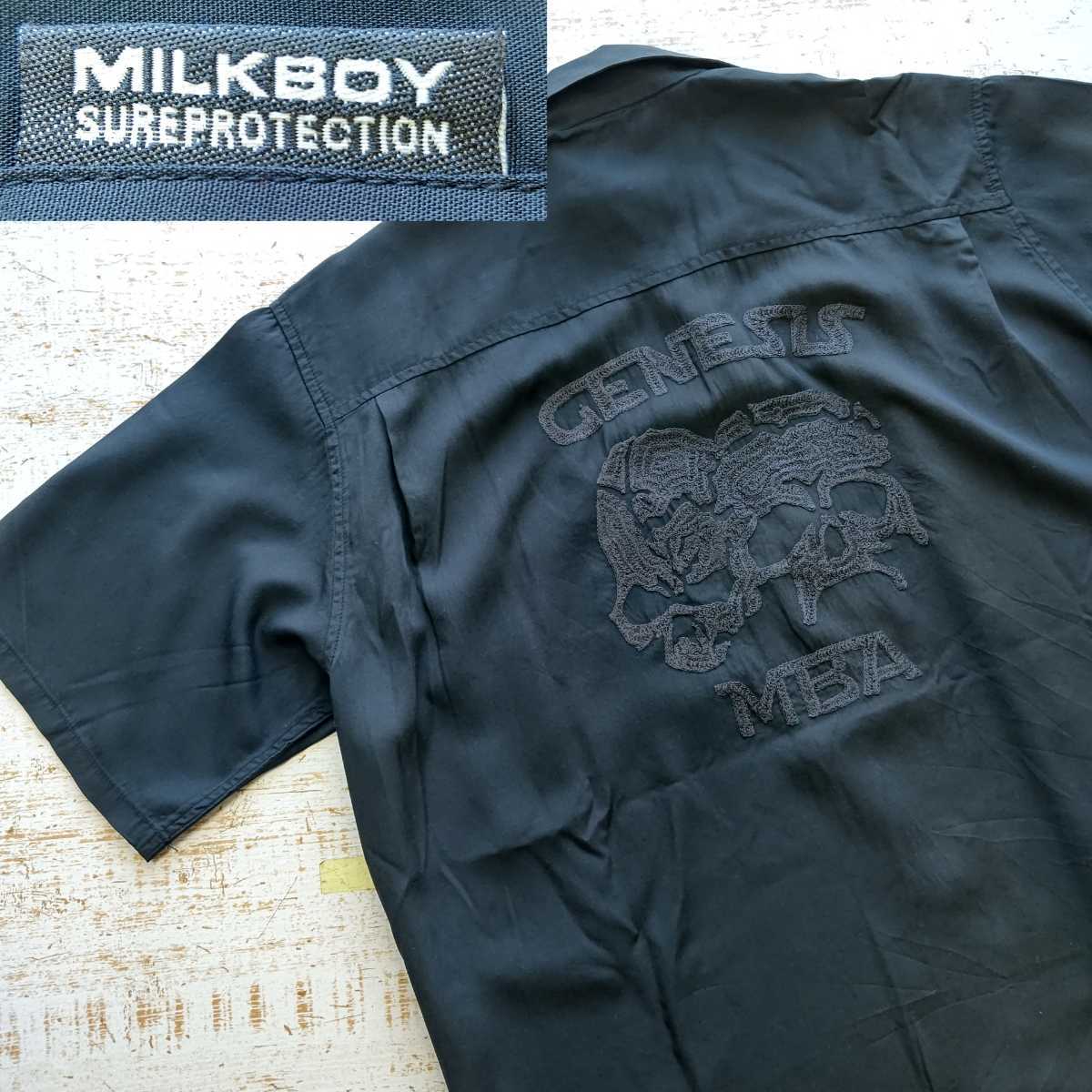 A509-MILK BOY ボーリング シャツ 半袖 古着 ミルクボーイ レイヨン アロハ チェーン ステッチ 刺繍 スカル ロカビリー ビンテージ 激 レア