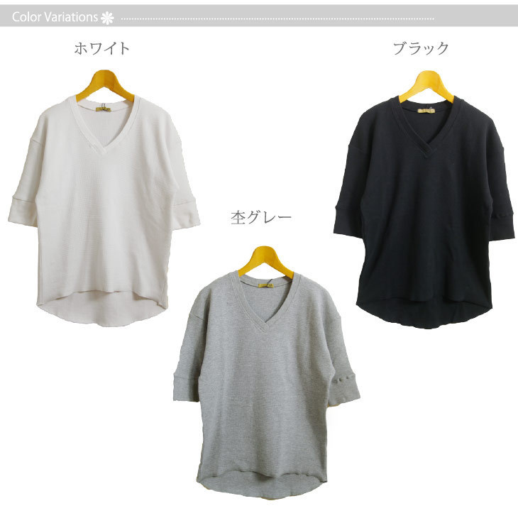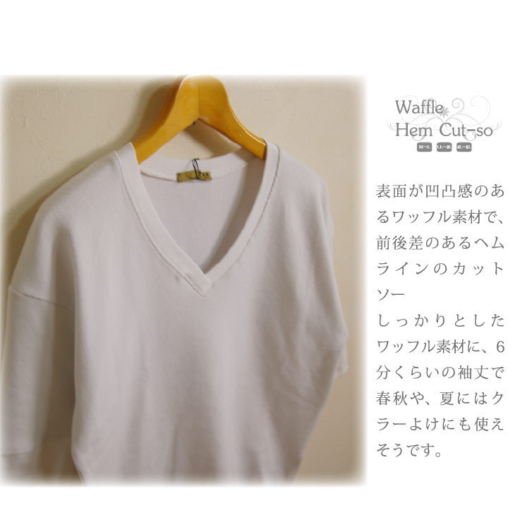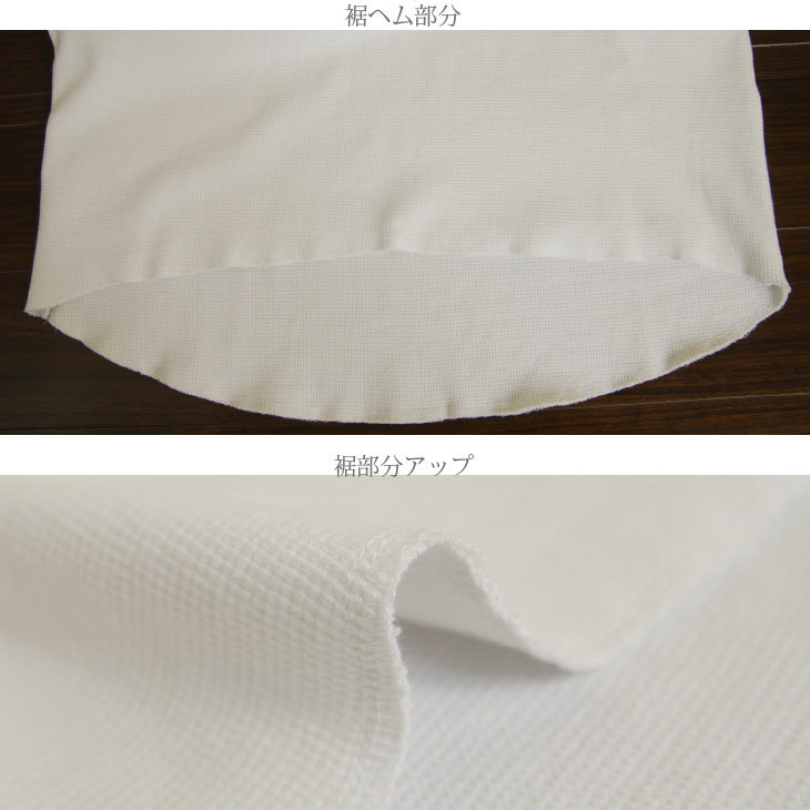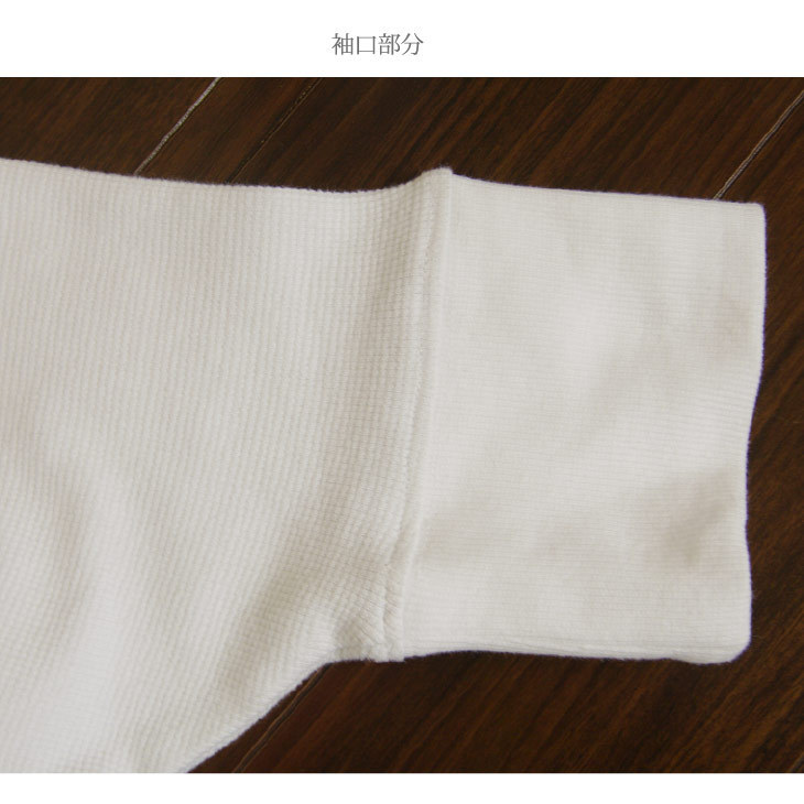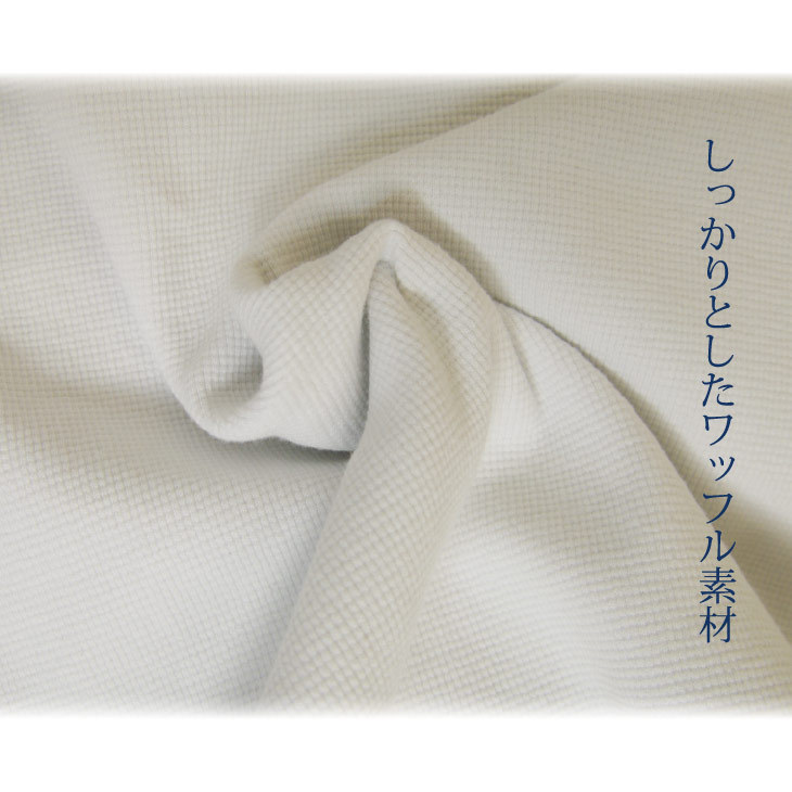 しっかりとしたワッフル素材に、6分くらいの袖丈で春秋や、夏にはクラーよけにも使えそうです。