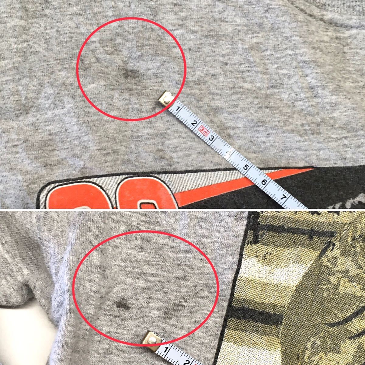 フロント面プリントの左側辺りに小さいですが黒っぽい汚れの付着があります。