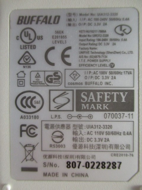 AD30537★バッファロー BUFFALO★ACアダプター★UIA312-3320★白★保証付!即決!