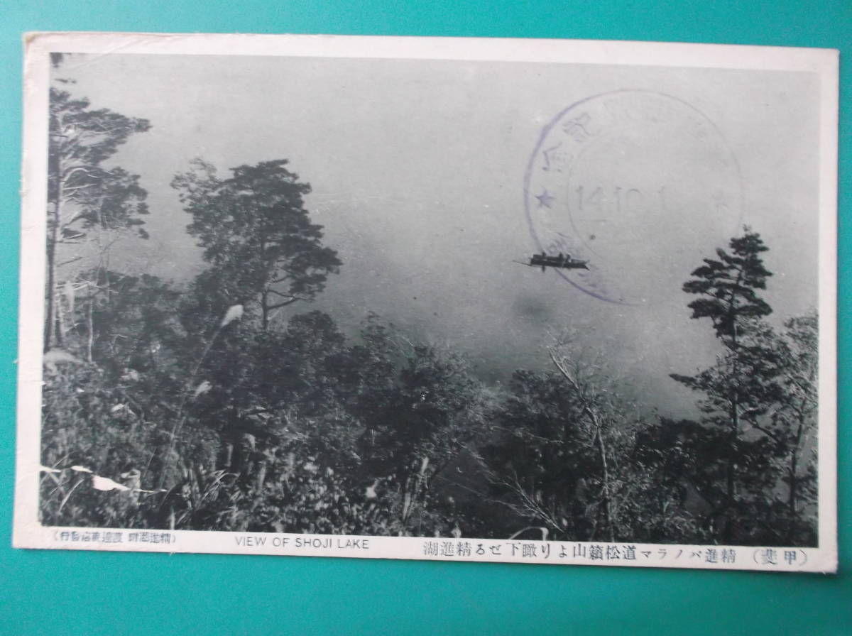 ⑤    甲斐 松籟山より精進湖  裏 精進遊覧記念印 藤屋旅館14.10.1