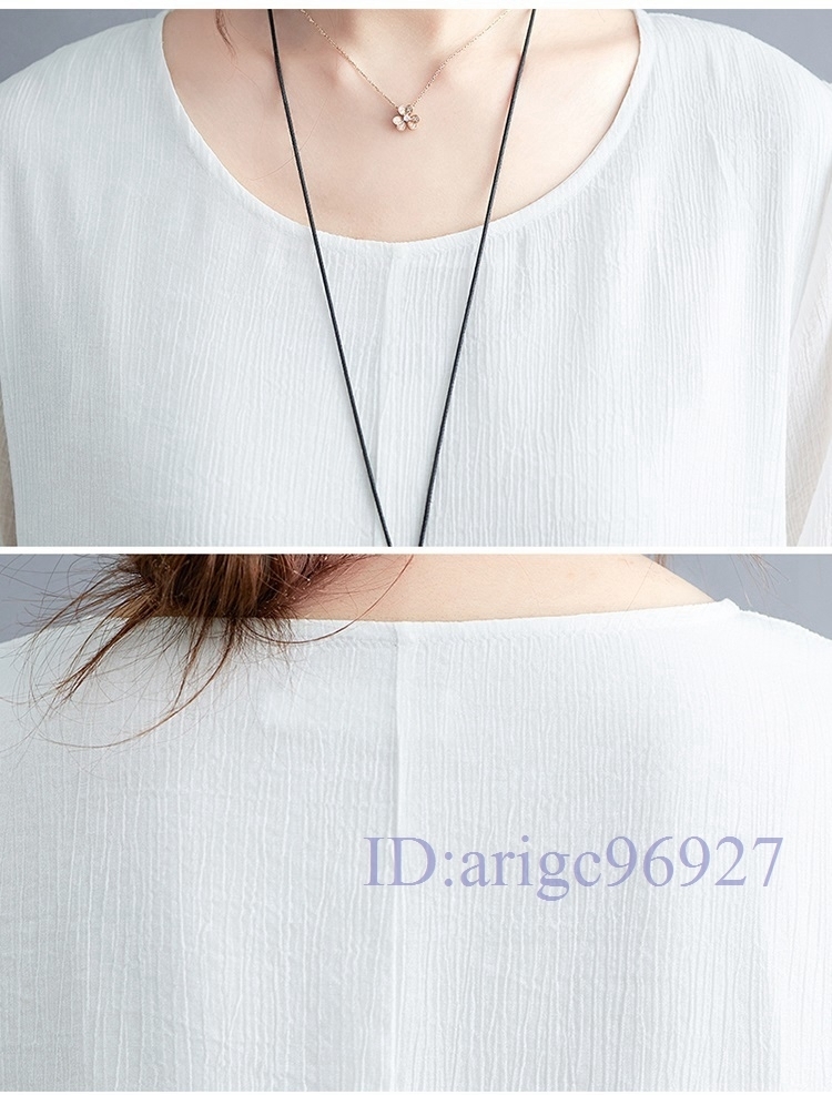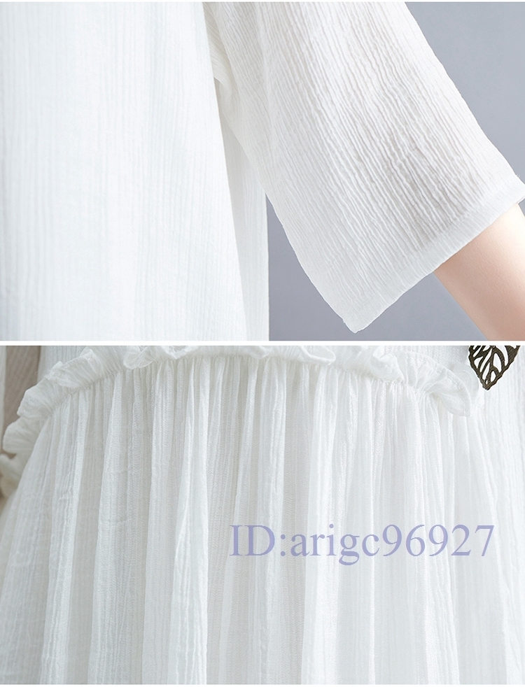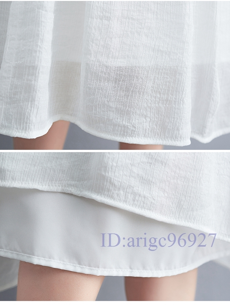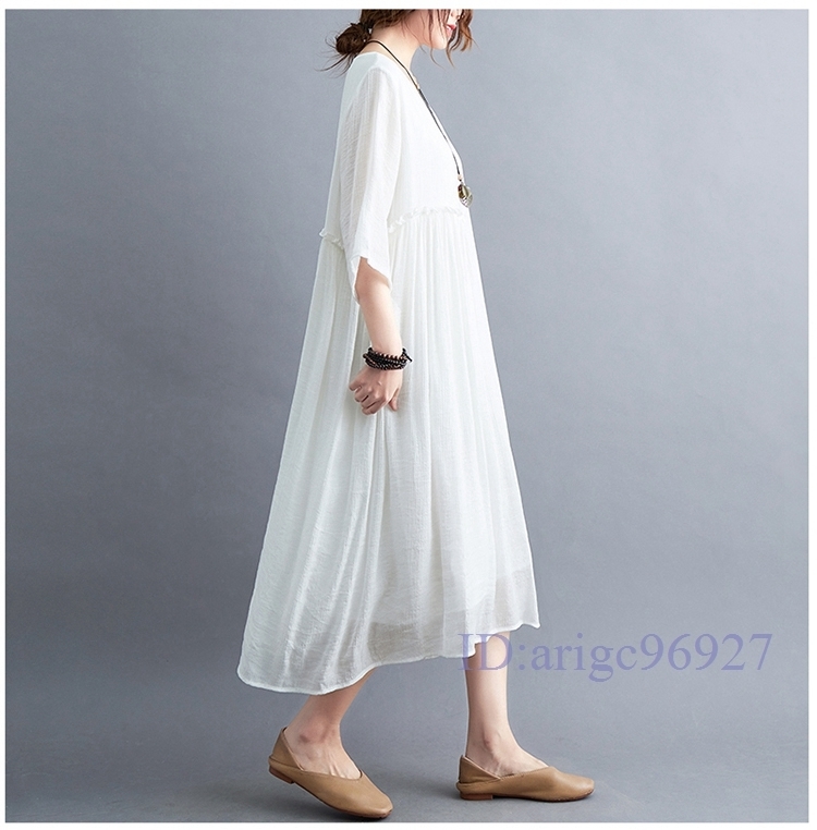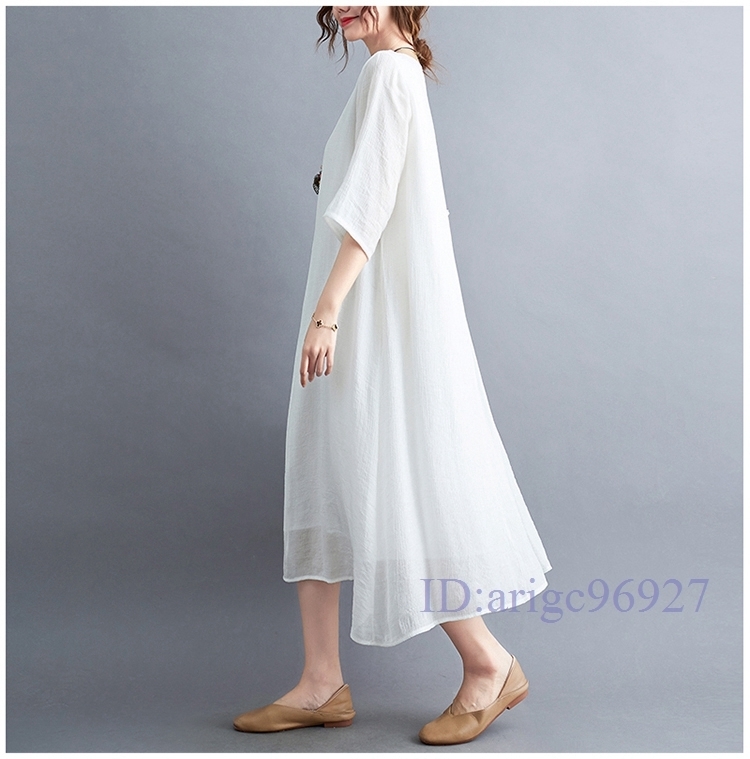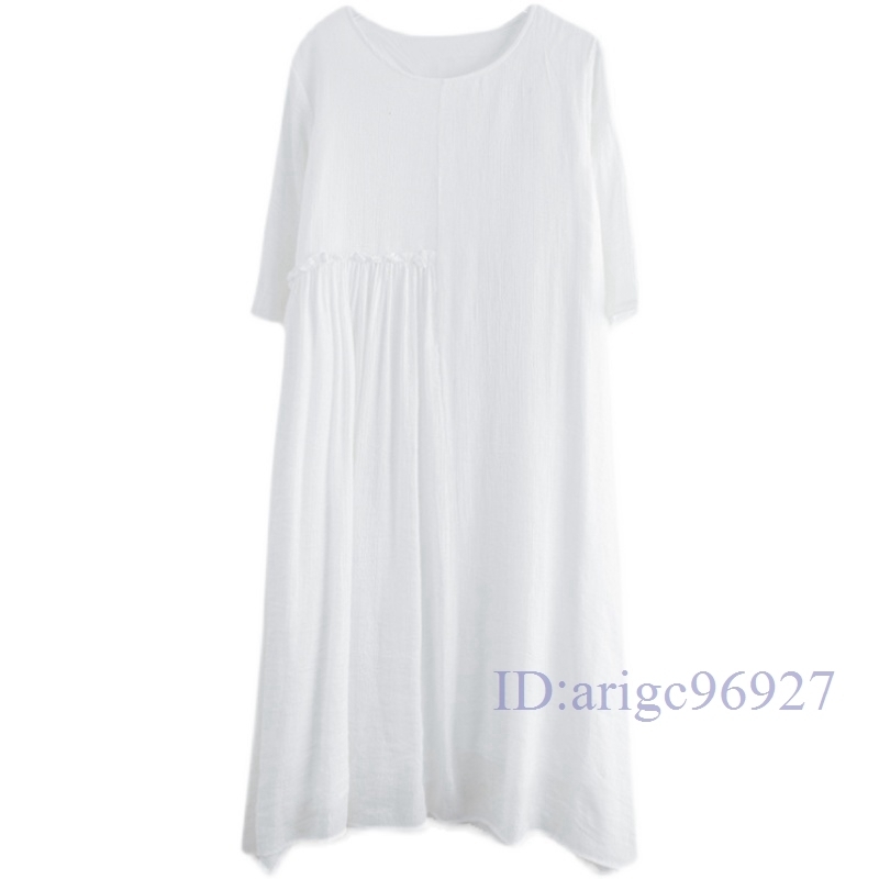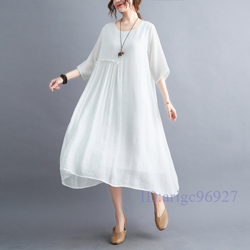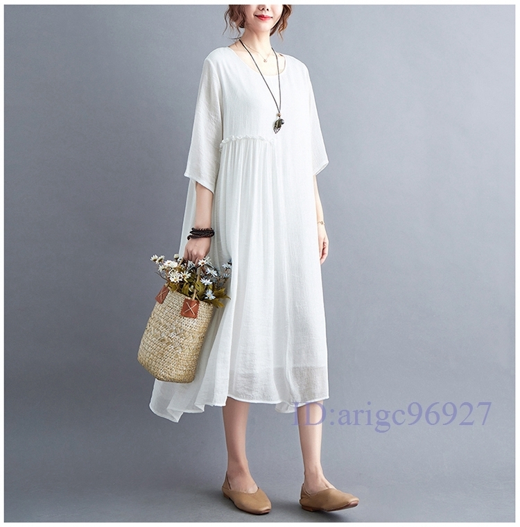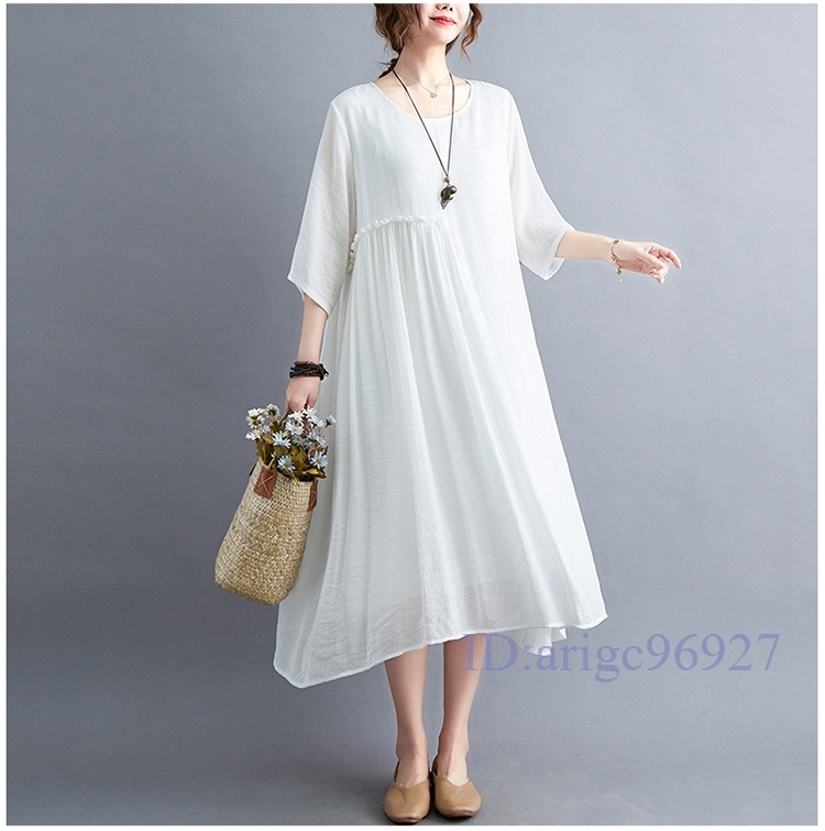 N310★新品夏*レディース*カジュアル**ゆったり大きいサイズ体型カバー*切り替え*無地半袖ロングワンピー*M~XXL 白