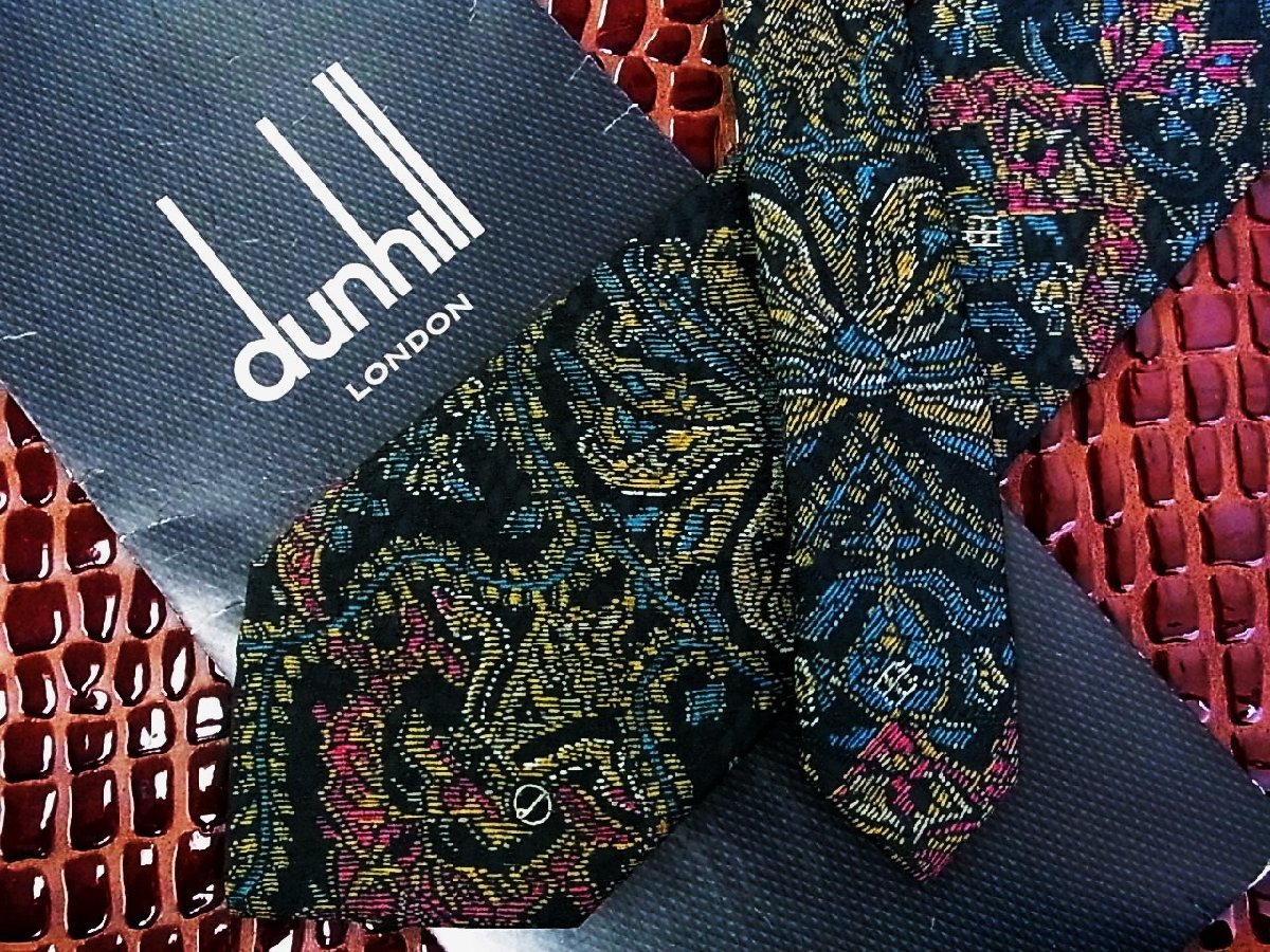 ♪今週の特売980円~♪0893♪良品【dunhill】ダンヒル【花 植物 dロゴ 柄】ネクタイ♪