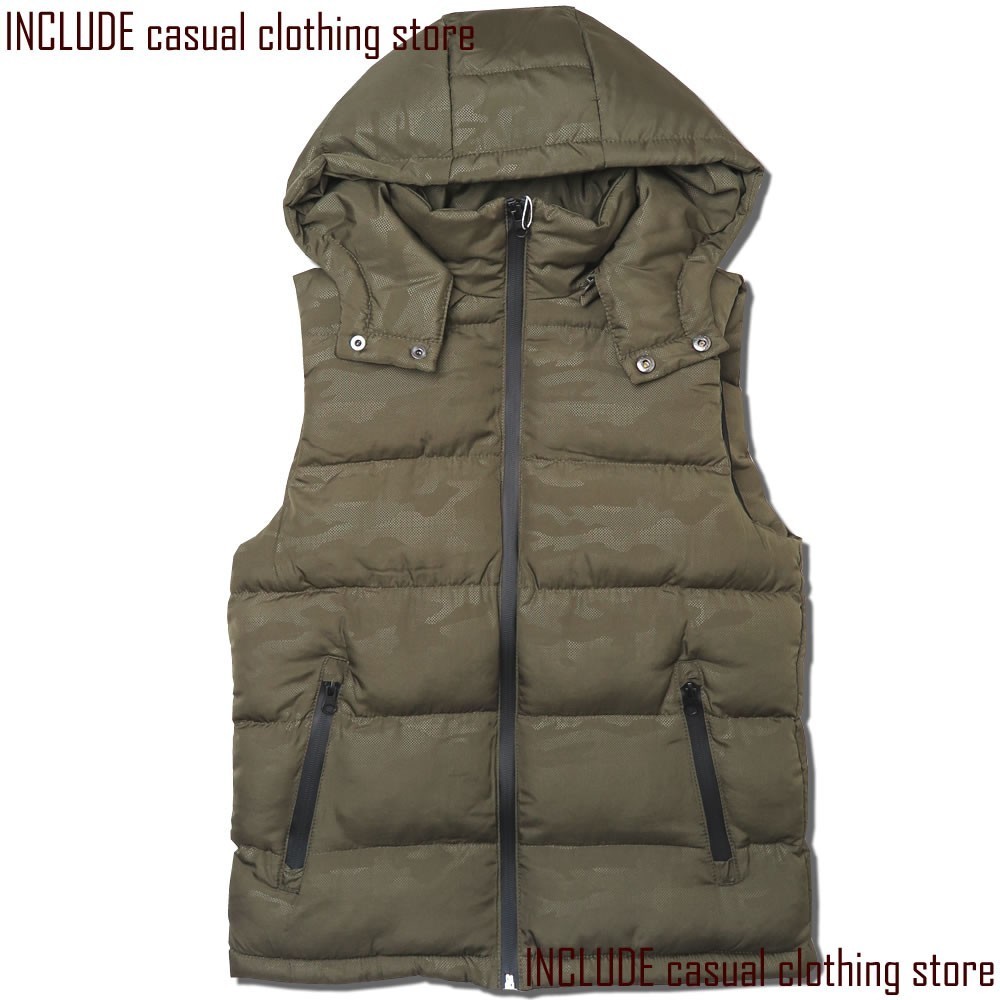 フード部分が取り外し可能な中綿ベスト。