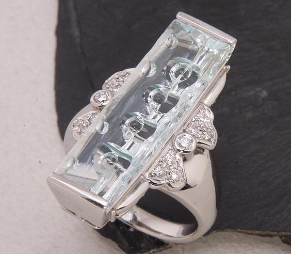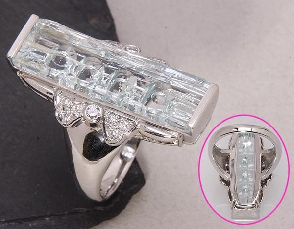 《質屋出品》Pt900★アクアマリン+ダイアデザインリングです。