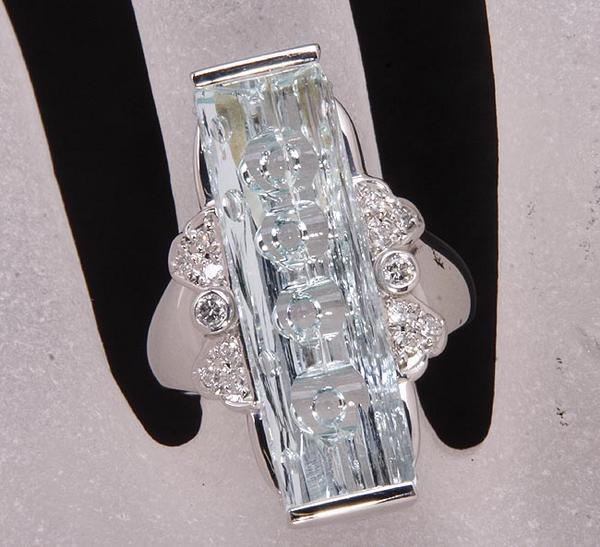 《質屋出品》Pt900★天然アクアマリン8.77ct+ダイアデザインリング★C-2556