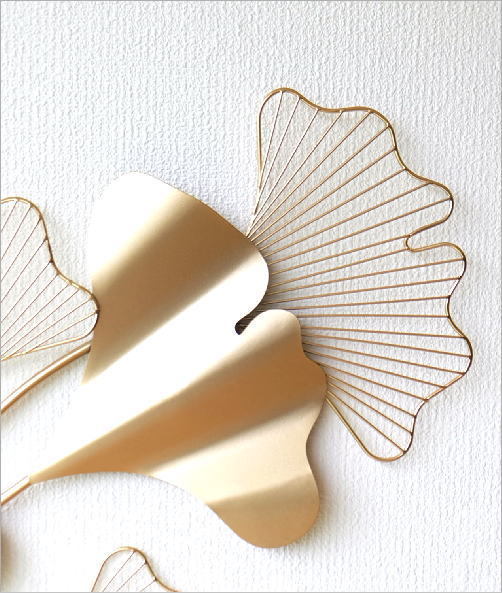 | ビッグな銀杏の葉を アートのようにデザインした アイアンの壁飾り 波うった 大きな葉や 細いアイアンで羽脈のようにデザインした葉 艶の無いゴールドのペイントが お洒落でモダンな印象です 枠がないので いろいろな 角度で飾れそうです 商品名 : アイアンの壁飾り ゴールド銀杏リーフ 商品番号 : kwb5791 サイズ(cm) : 幅57×厚み5×高さ80 材質 : アイアン 重量 : 1kg 生産国 : 中国 ※取り付け用のネジは付いていません ※壁等の強度をお確かめの上、お取り付けください ※塗装ムラや擦り傷、小傷等はご容赦ください ※手作り品につき、装飾の形状や位置、向きなどが異なる場合がございますが、全体の雰囲気は変わりません ※ディスプレイによる色の違いはご了承下さい |