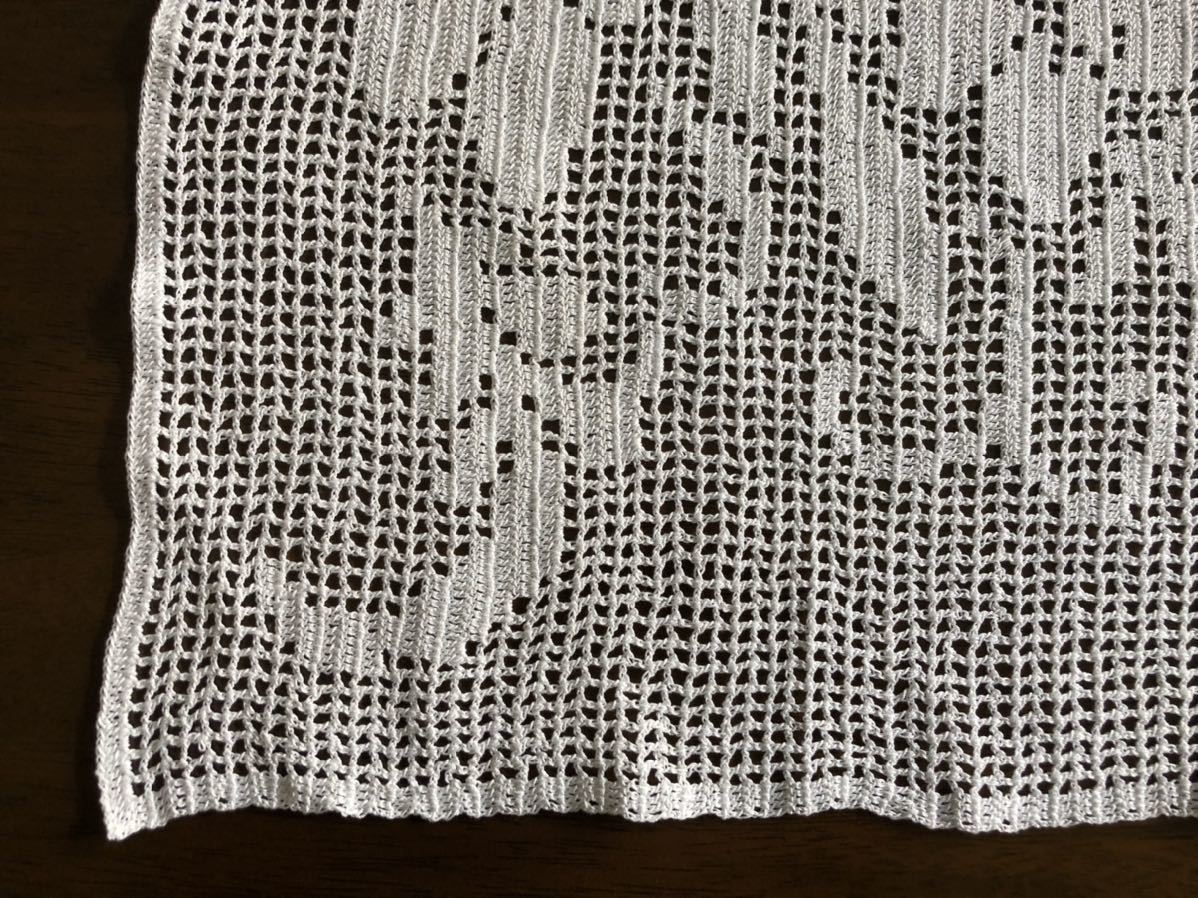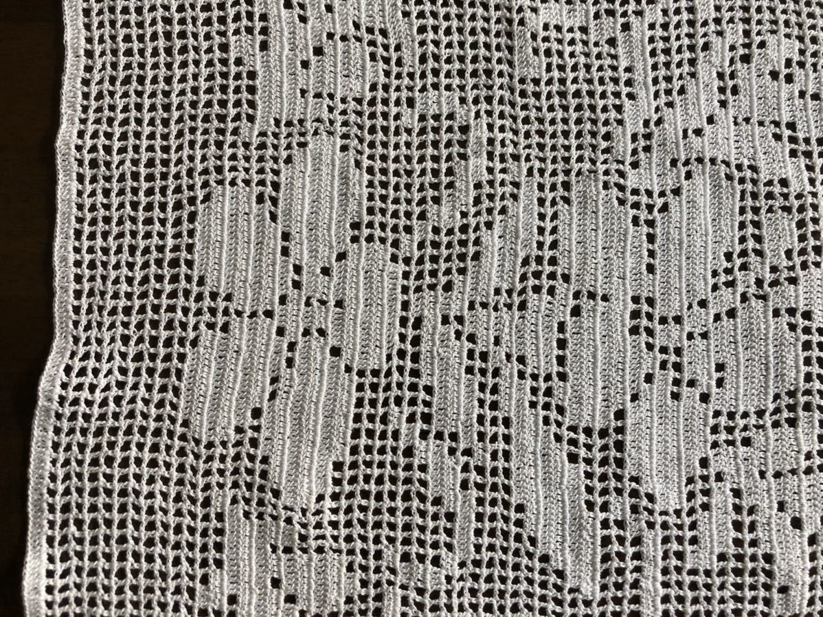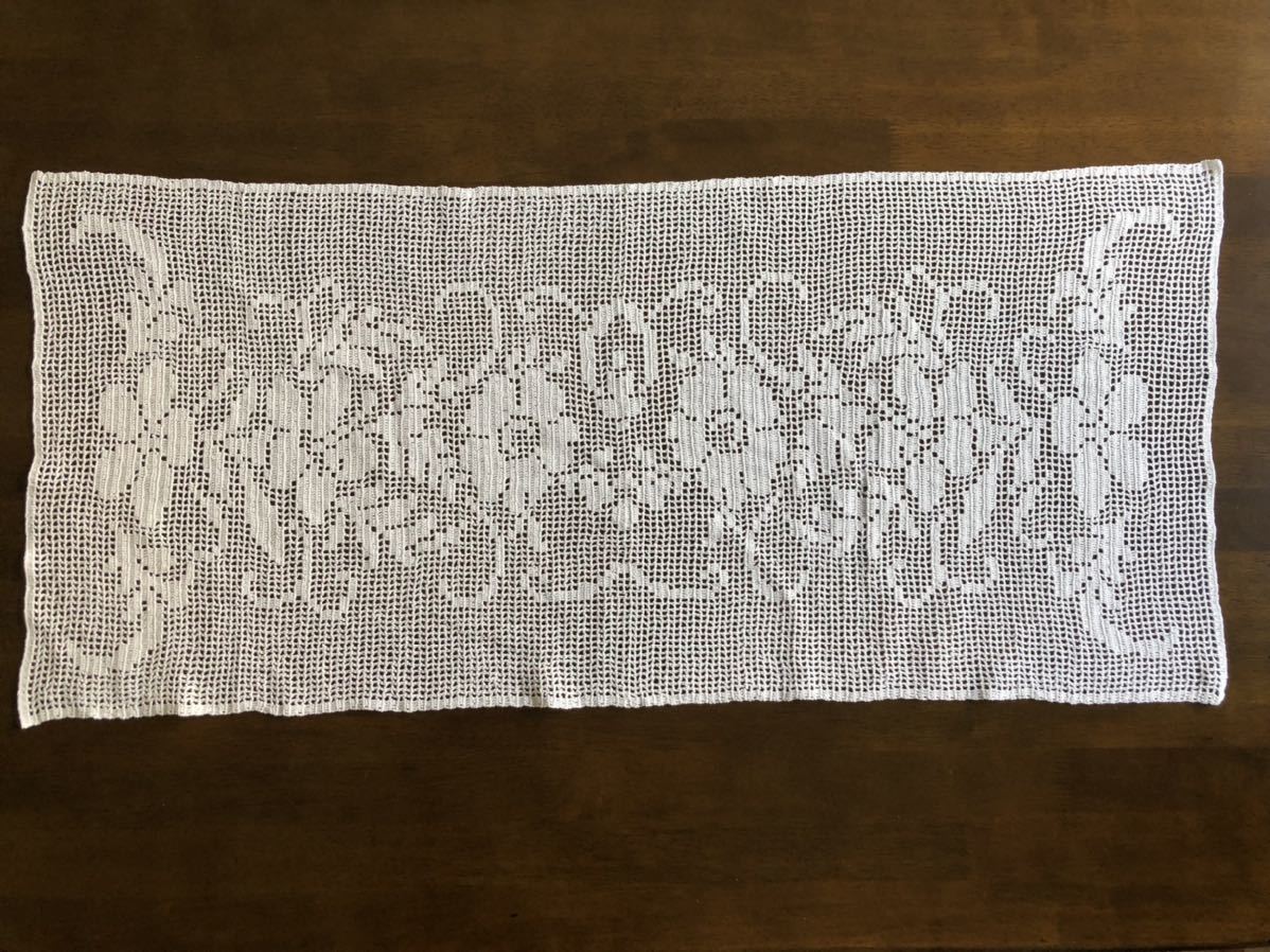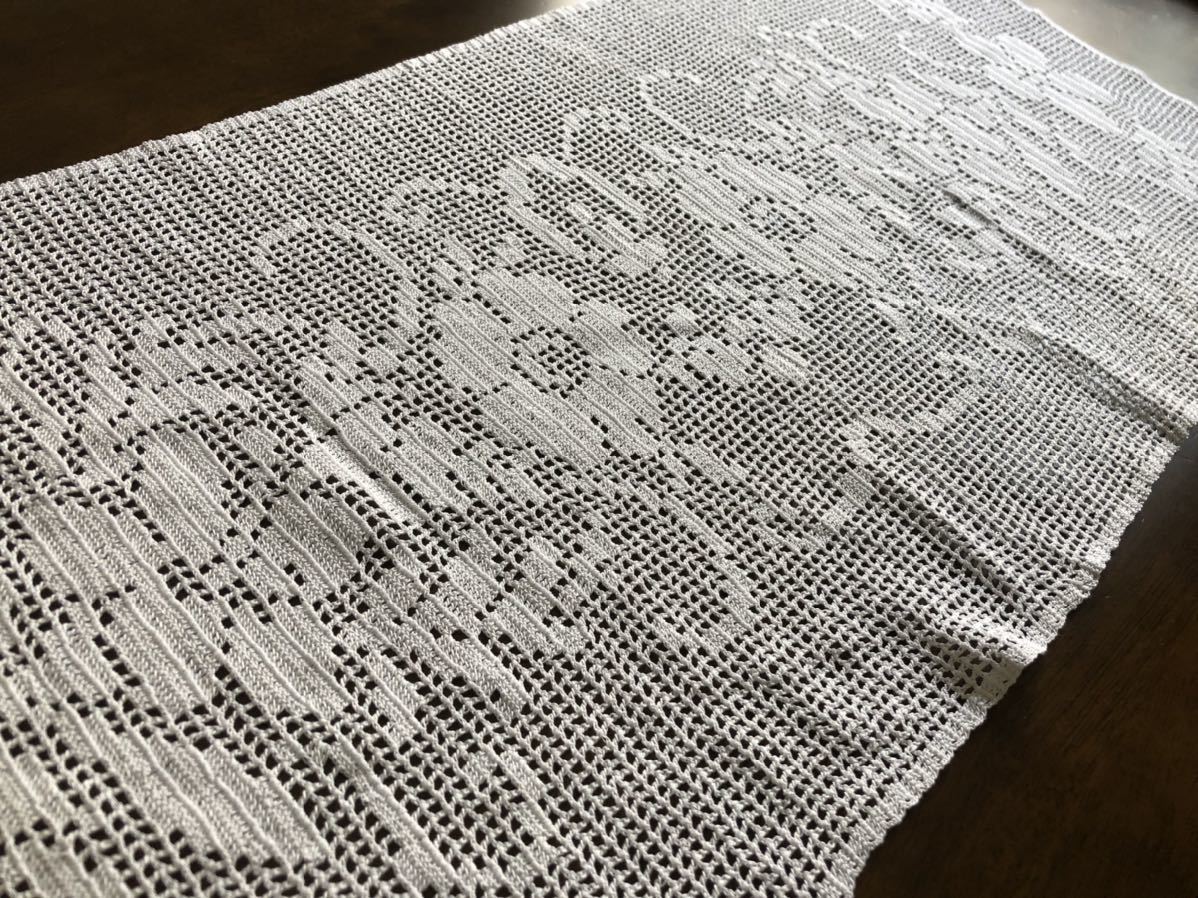 母が作ったレース編みです。サイズは約42×94cmです。とても綺麗にできています。