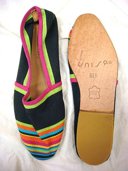 ビンテージ UNISA エスニック 民族 マルチ カラー デザイン サンダル シューズ スリッポン スリッパ スニーカー エスパドリーユ 蛍光 黒 珍