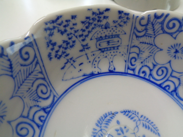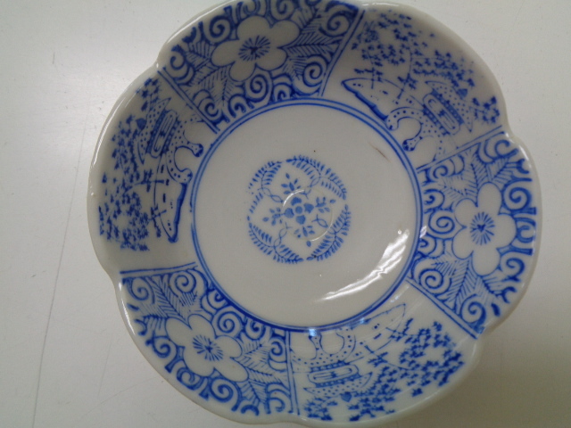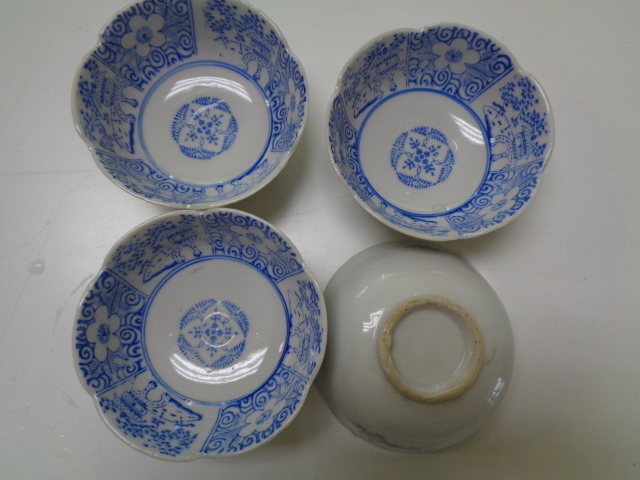 B271-60 時代 有田焼 花唐草画 古磁器 輪花小鉢 4客セット 10センチ×4.5センチ アンティーク