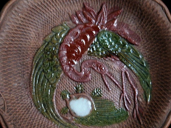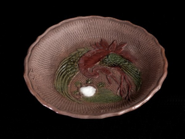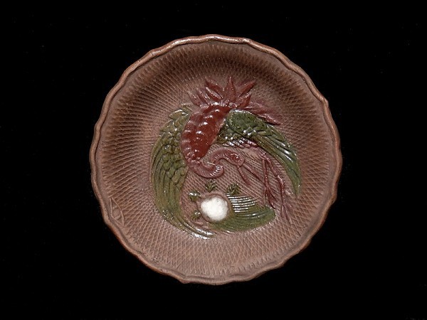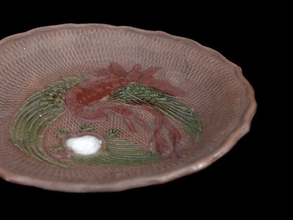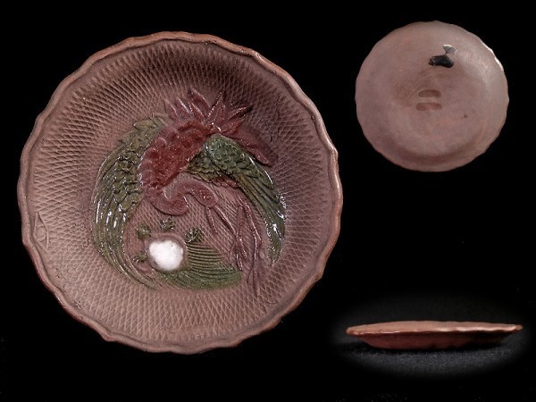 ★華心★ BLj-D045mS 備前 色絵 舞鶴に亀の図 煎餅皿
