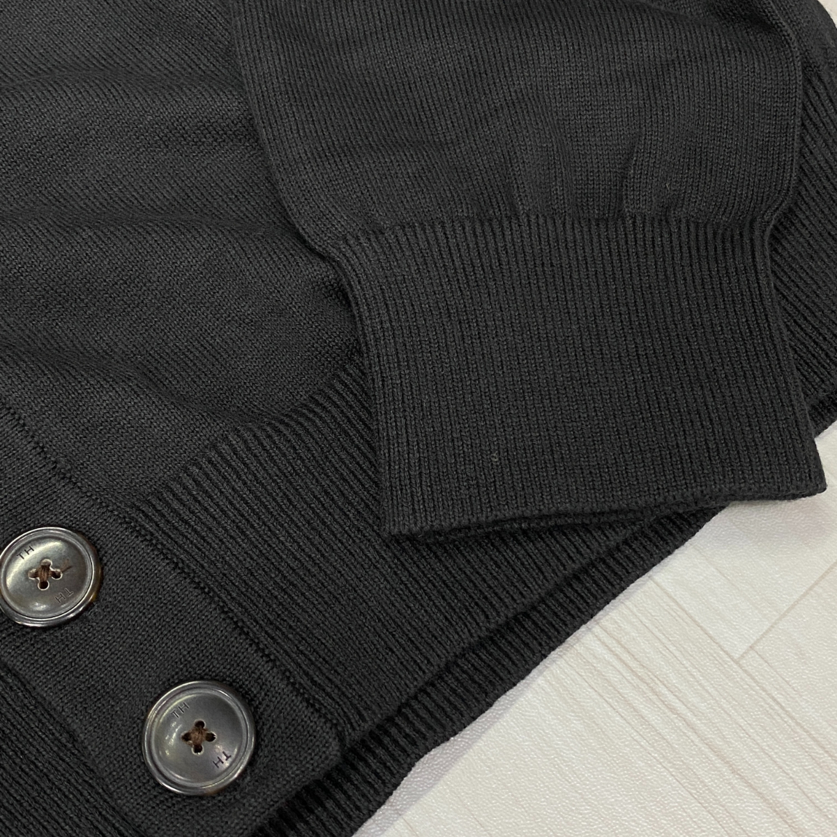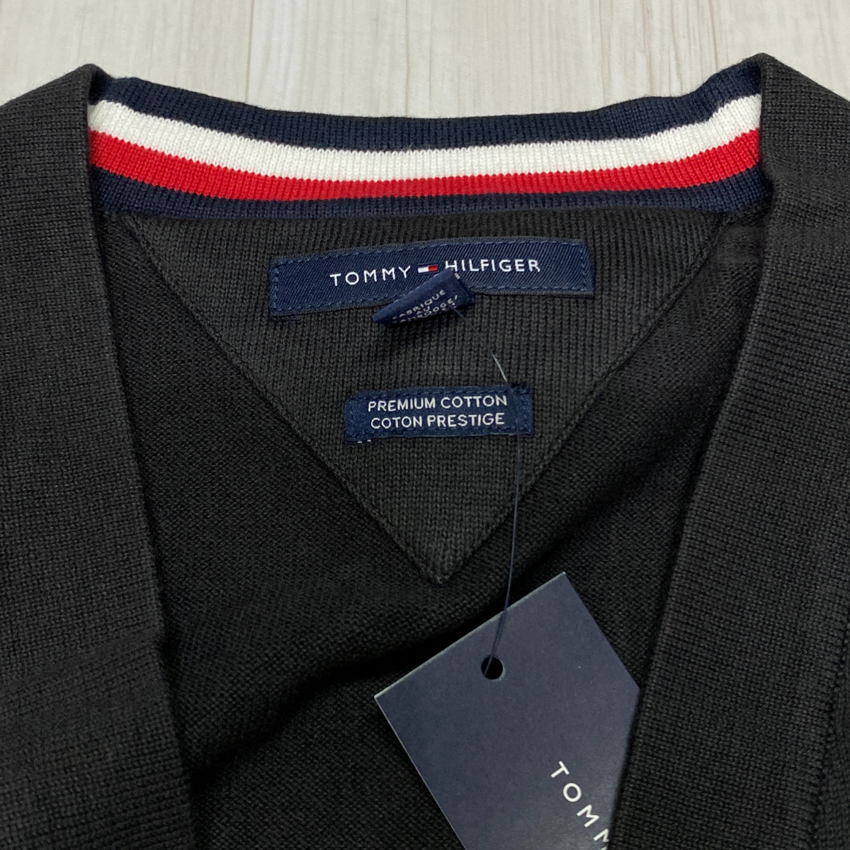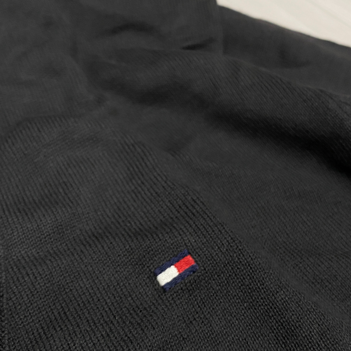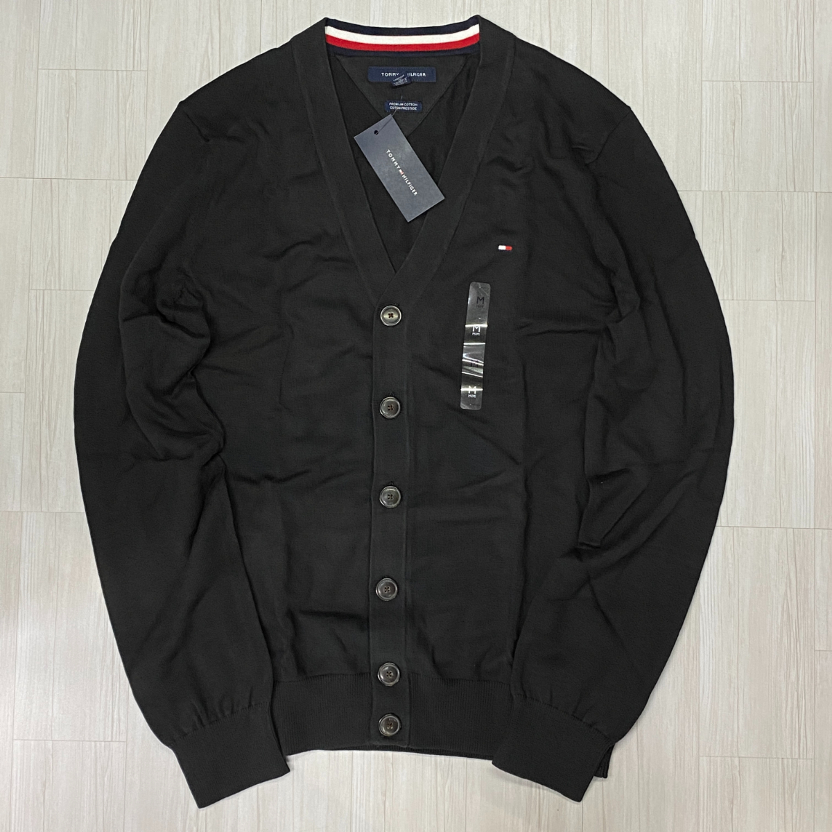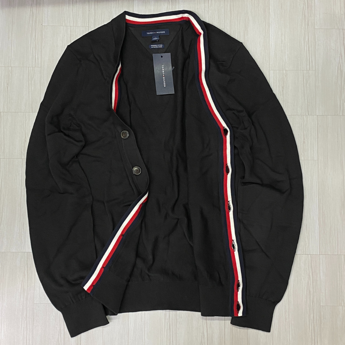 USAモデル 【XL】 TOMMY HILFIGER トミーヒルフィガー プレミアムコットンニット ハイゲージ カーディガン 黒 フラッグロゴ (R4F-17)
