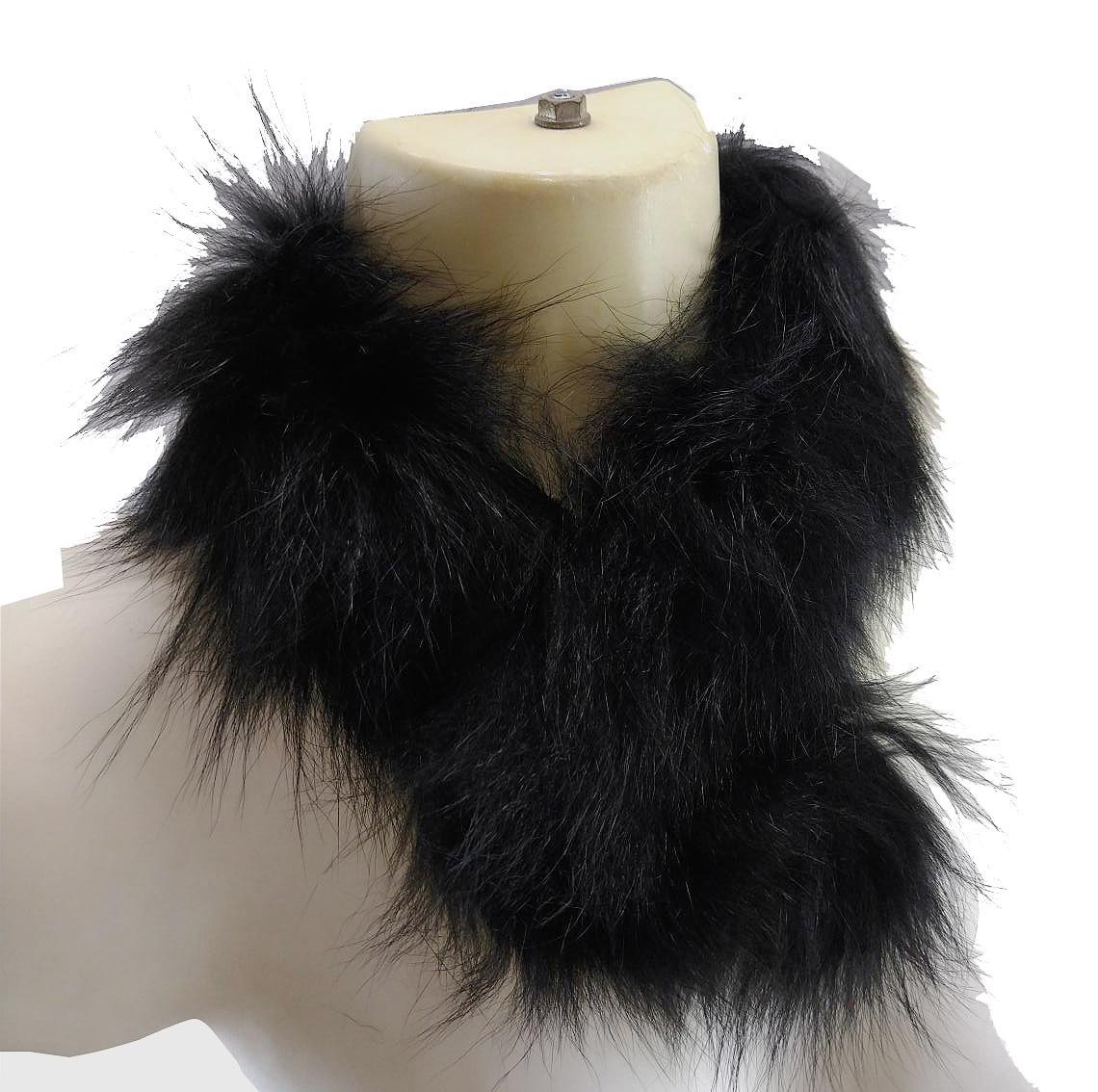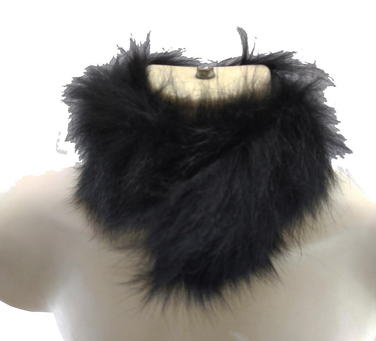 SI8142■ 新品 マフラーストール 毛足長め ファー留め具付き 長さ約63cm 幅約13cm 黒 ブラック 送料350円