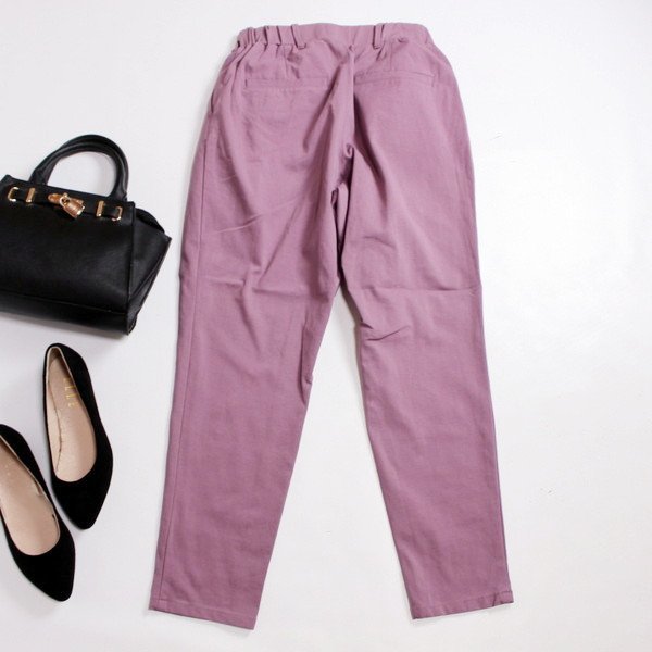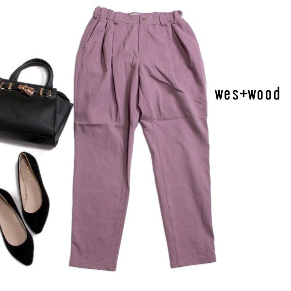 美品 wes+wood ■ 合物 くすみ ピンク ストレッチ コットン タックパンツ スラックス S 7号 オールシーズン