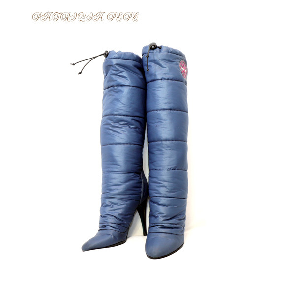 PATRIZIA PEPEパトリツィア ペペ フェザーダウンブーツ ブルー 革底 サイズ36(23.0~23.5)