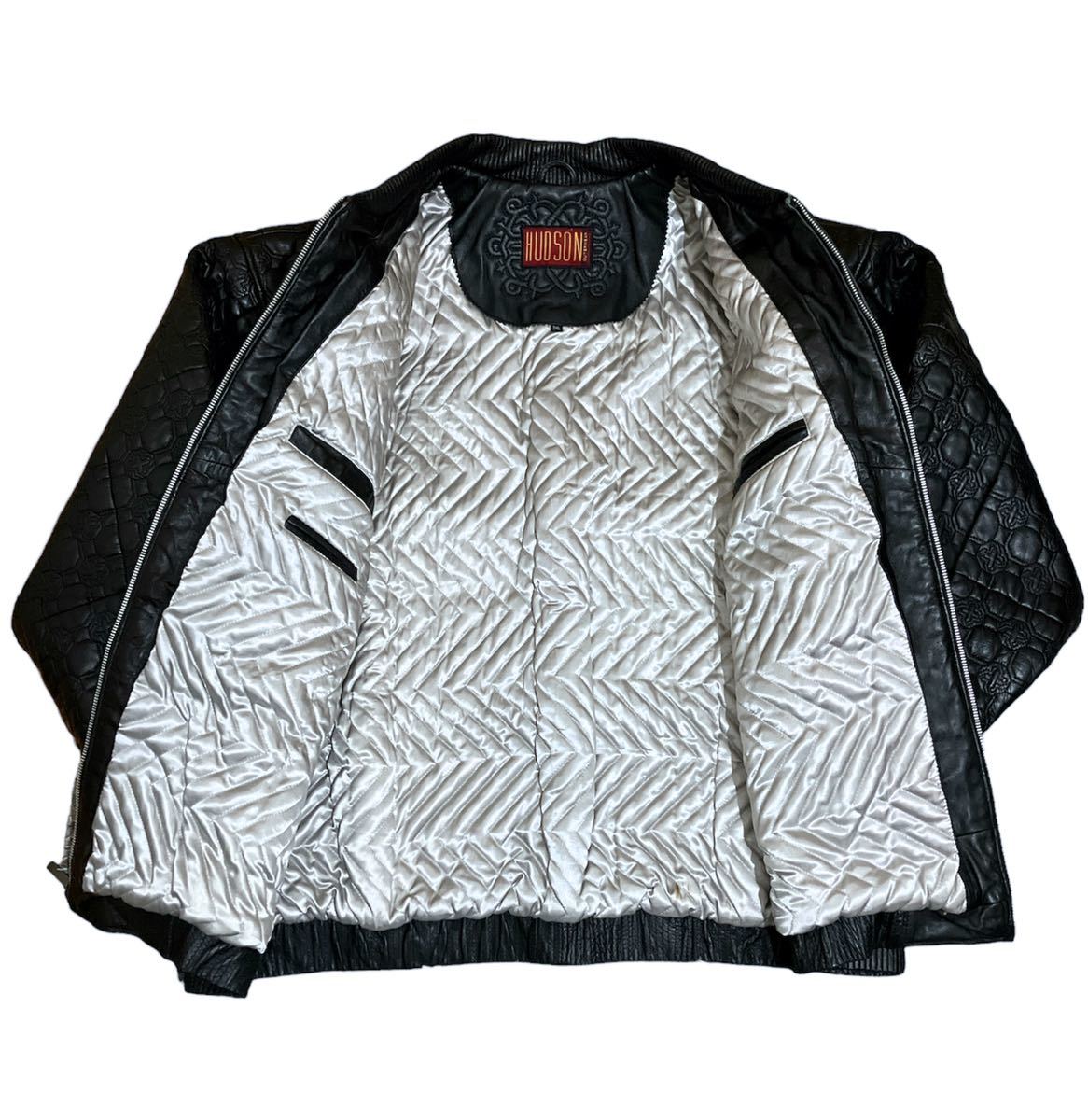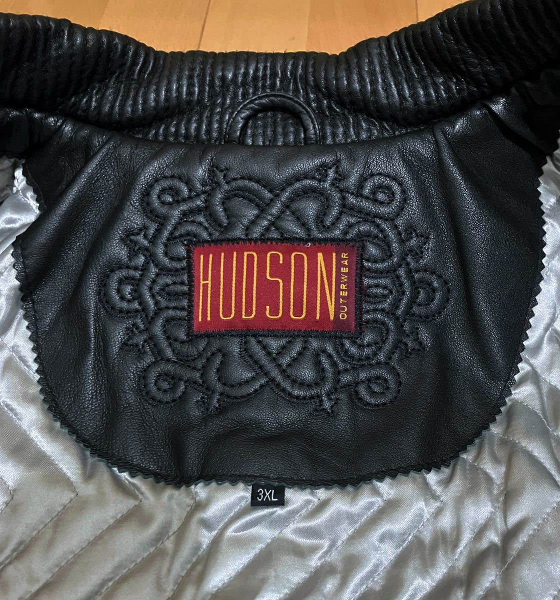 【レア】90’s HUDSON OUTWEAR 刺繍 レザージャケット ブラックカルチャー ヒップホップ 大きいサイズ ビッグサイズ