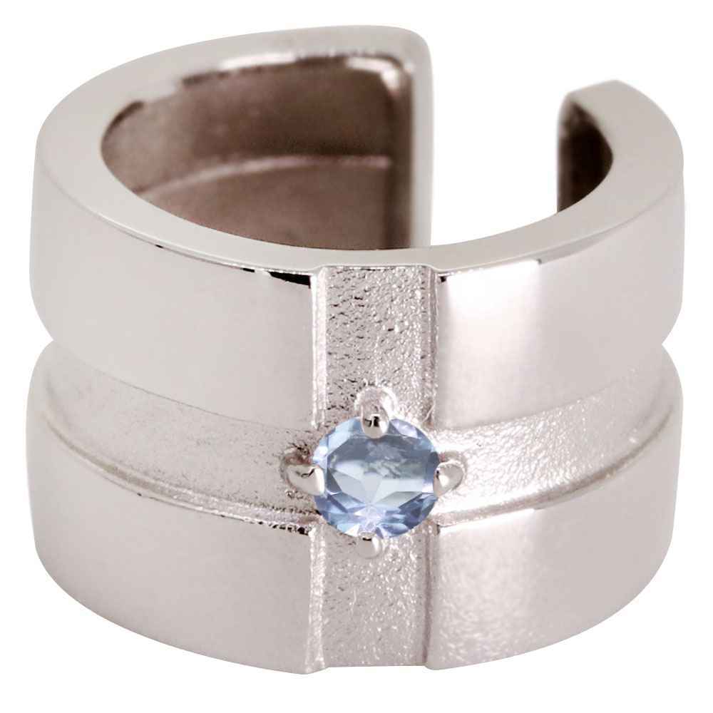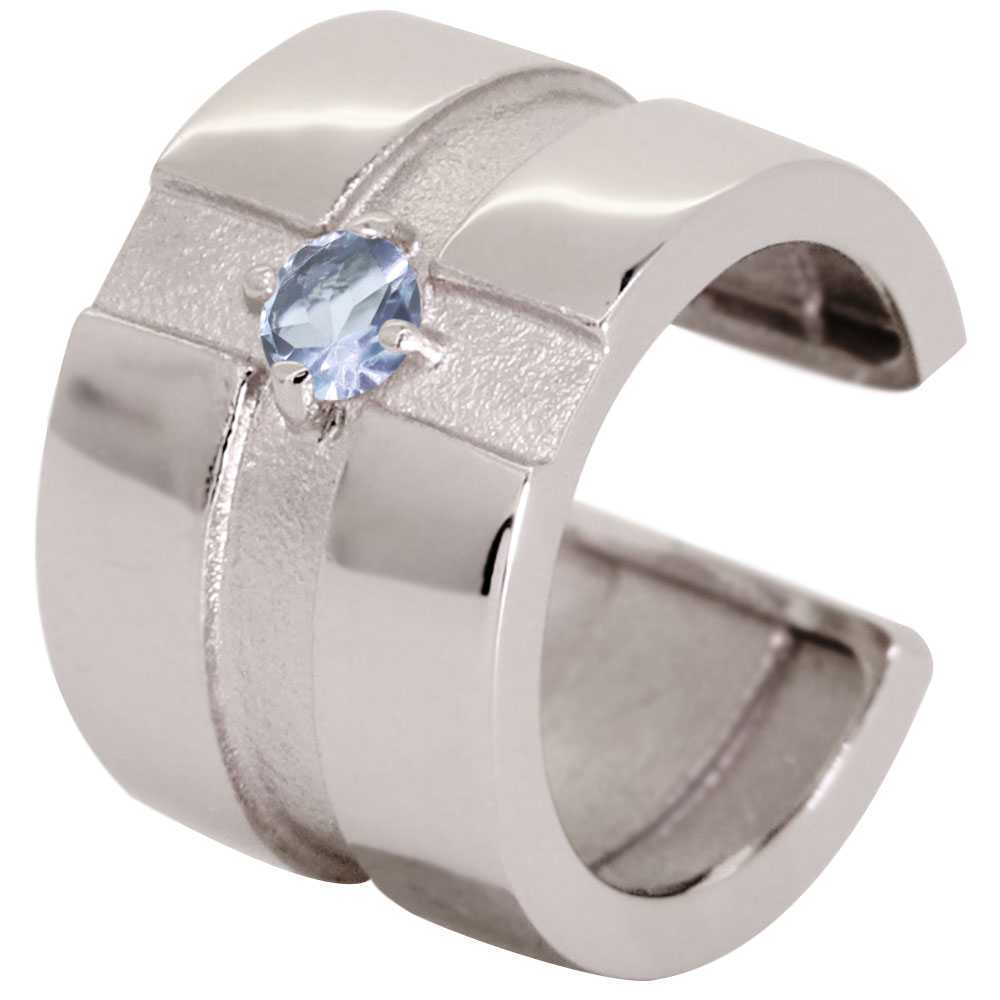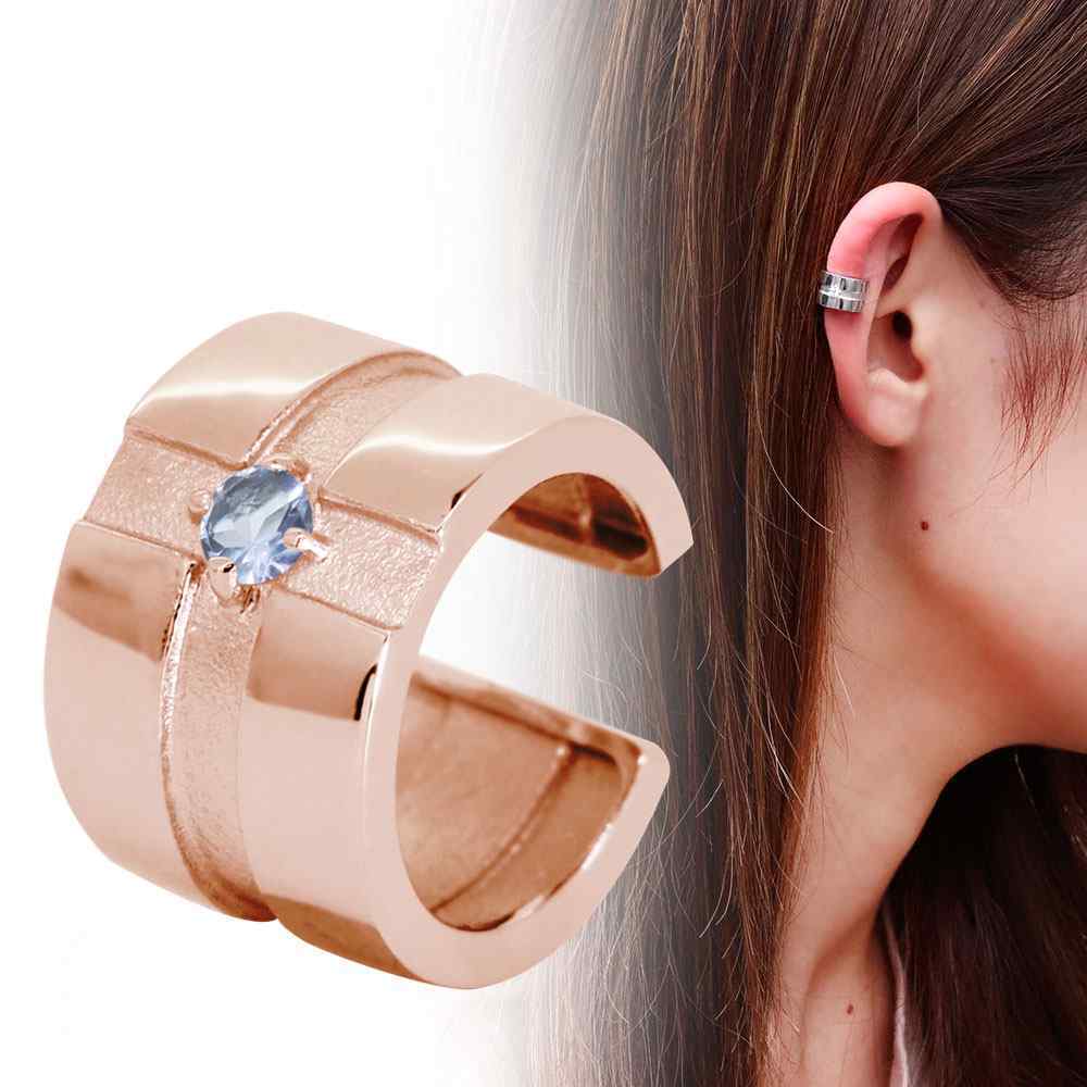 3月誕生石アクアマリンサンタマリアを使用した10金製の、クロス(十字架)モチーフのレディースイヤーカフです。