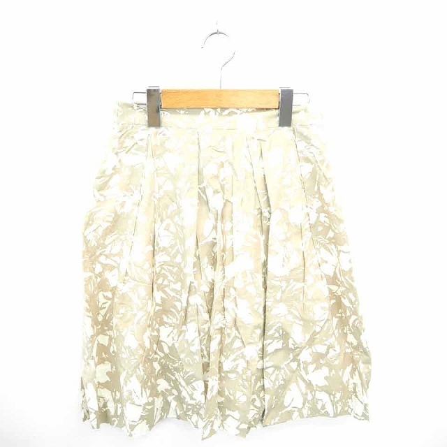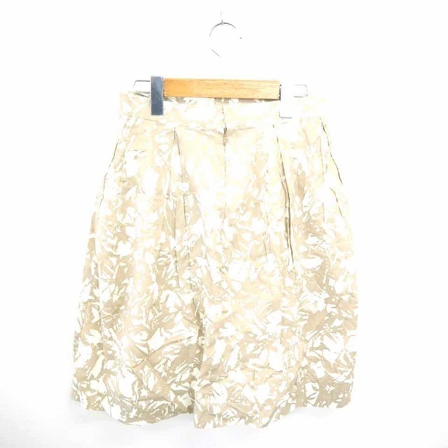 トゥモローランドコレクション スカート フレア ひざ丈 総柄 薄手 バックジップ 36 ベージュ アイボリー 薄茶 /TT33 レディース