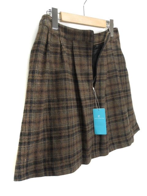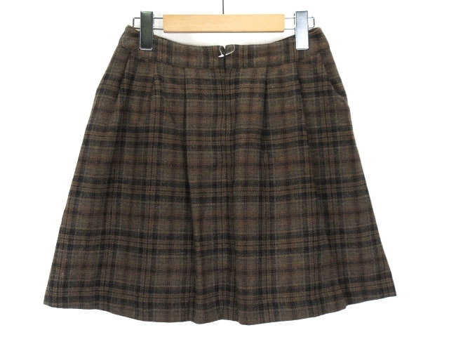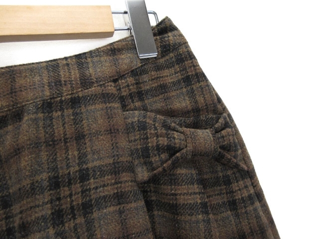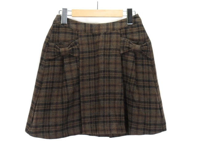 未使用品 アースミュージック&エコロジー EARTH MUSIC & ECOLOGY スカート フレア チェック リボン ウール混 F 茶 レディース
