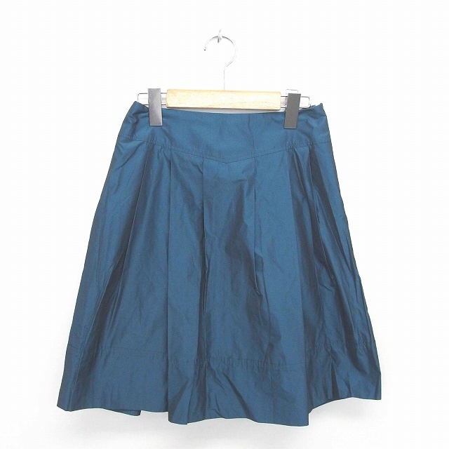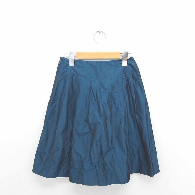 バーニーズニューヨーク BARNEYS NEW YORK スカート フレア ひざ丈 サイドジップ 薄手 無地 34 緑 グリーン /TT19 レディース