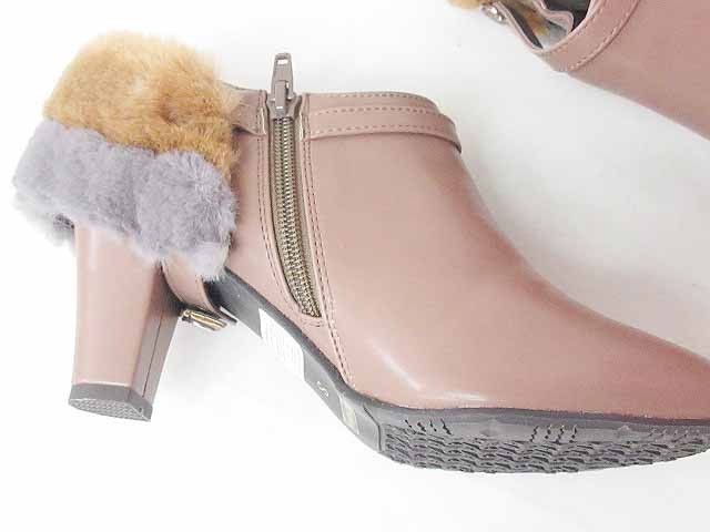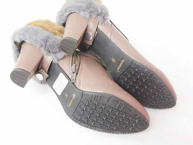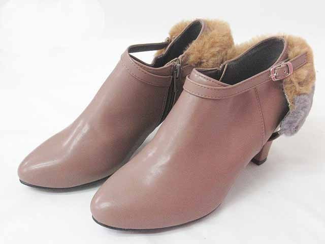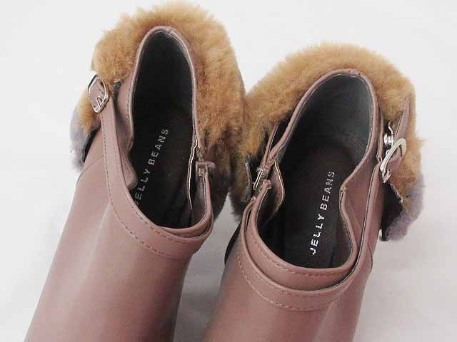 ジェリービーンズ JELLY BEANS ブーティ ショートブーツ ファー 2WAY ヒール 無地 茶 S レディース
