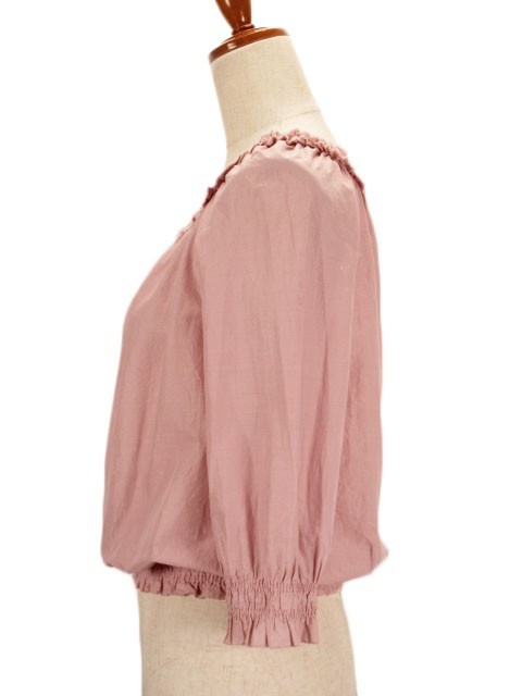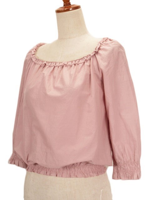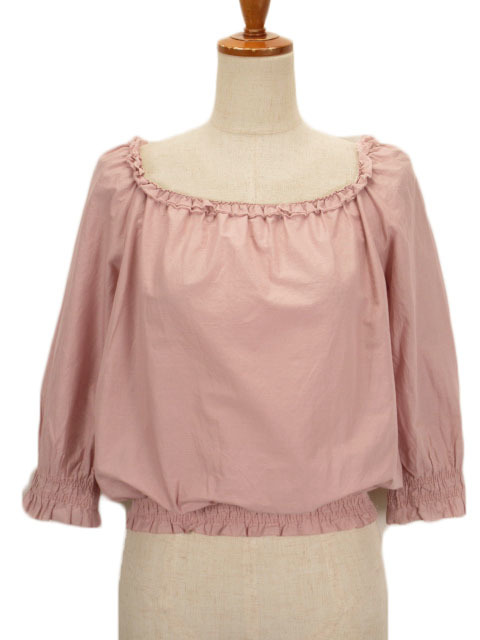 クミキョク 組曲 KUMIKYOKU カットソー ギャザー フリル オフショルダー 七分袖 2 ピンク レディース