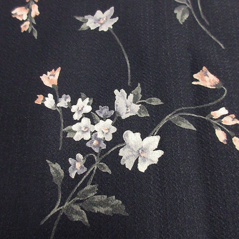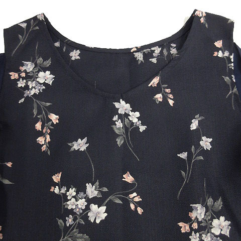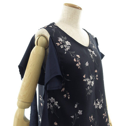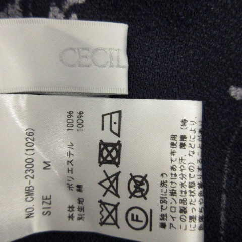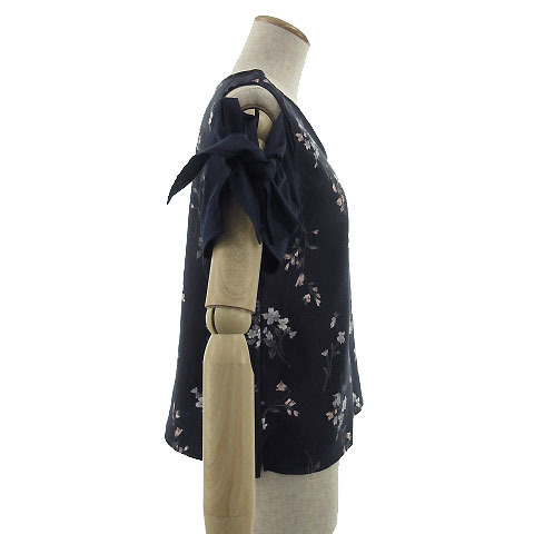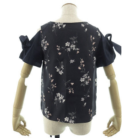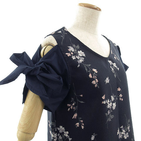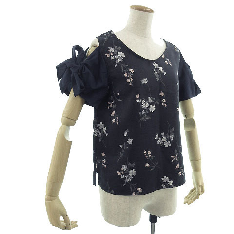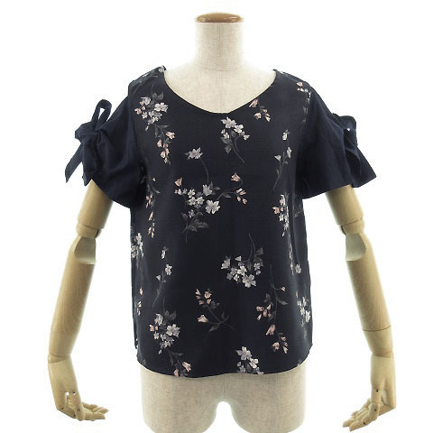 セシルマクビー CECIL McBEE カットソー 半袖 袖リボン 花柄 総柄 ネイビー 紺 M レディース