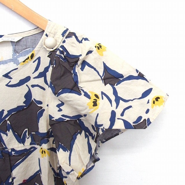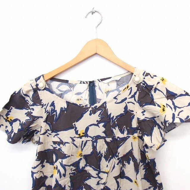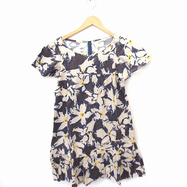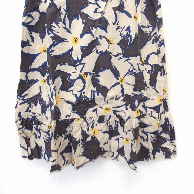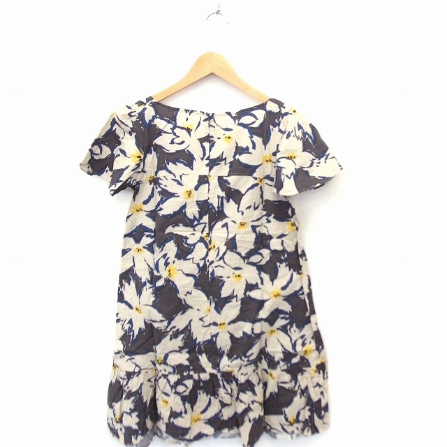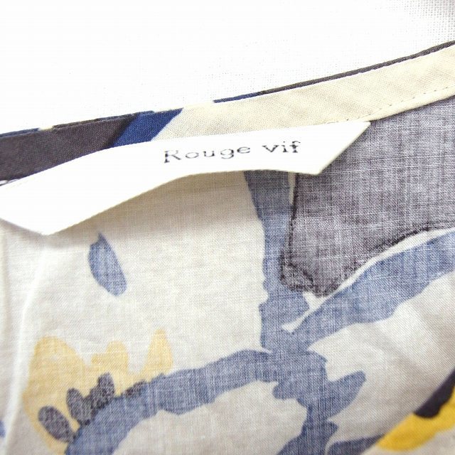ルージュヴィフ Rouge vif サンプル品 ワンピース 花柄 フレア ボートネック 半袖 ひざ丈 ベージュ グレー /FT39 レディース