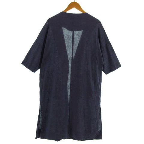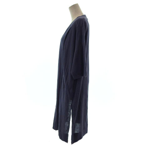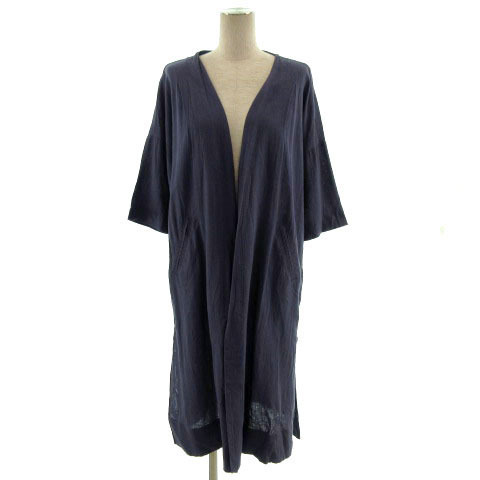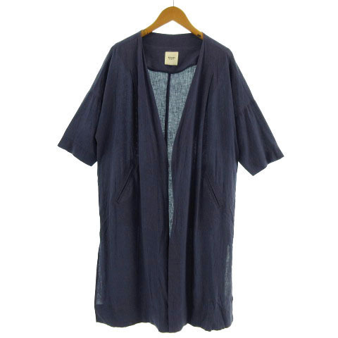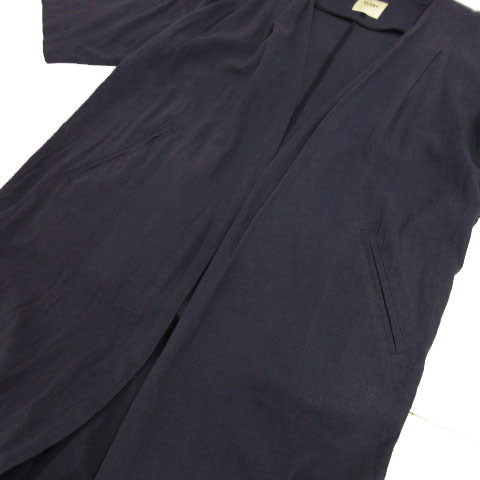 ビームスハート BEAMS HEART コート ノーカラー 薄手 七分袖 前開き スリット リネン混 ブルー系 青系 レディース