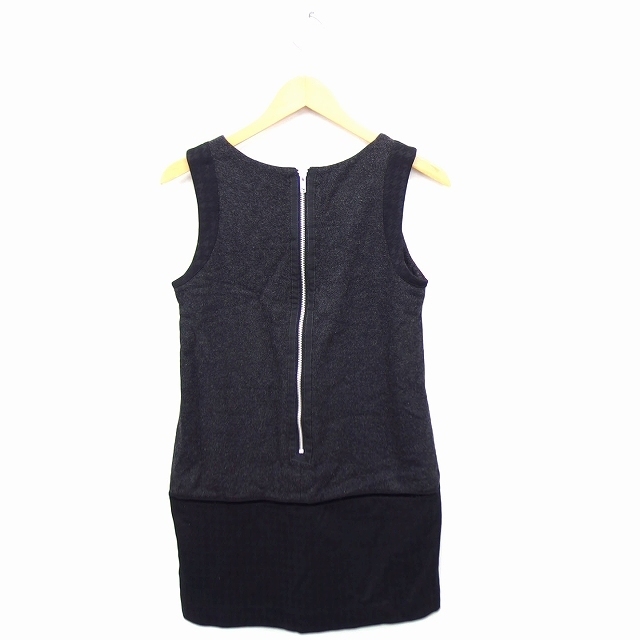 カリアング KariAng ワンピース ノースリーブ ミニ 切替 千鳥柄 ウール S グレー 灰 /FT2 レディース