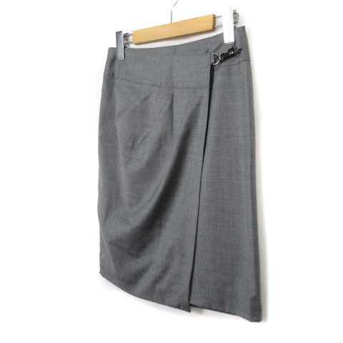 インディヴィ INDIVI V.A.I スカート タイト ラップテイスト スリット ウール 36 グレー レディース