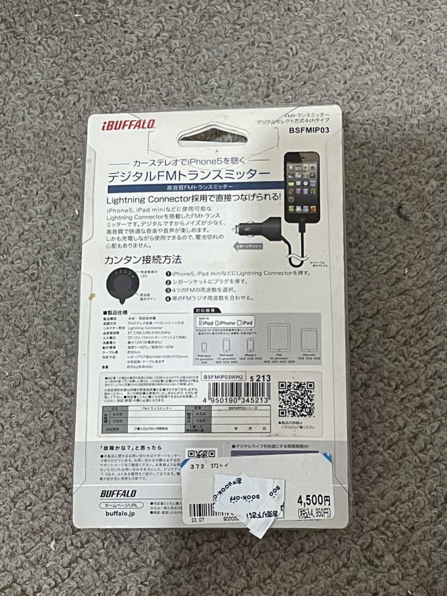 ◯ 東京都三多摩地区の家電量販店にて商品を購入しました。数回使用しましたその後使用することなくそのままです。iPhoneをライトニングケーブルに繋ぎカーステレオのFMで受信する。https://www.buffalo.jp/product/detail/bsfmip03bk.html商品の状態などボディーの状態などは写真でご確認下さい。トラブル防止の為現状品ジャンク品とします。現状品なので写真で判断できる方のみ入札お願いします。出品商品は1枚目に写っている物がすべてです。落札いただいてから24時間以内にご連絡と3日以内の入金をお願いします。期日を守れない場合は落札者の都合で取り消しいたします。その際落札者に悪い評価がつきます。また、かんたん決済支払い期限が切れた場合、入金が出来なくなるので落札者の都合でのキャンセルとなります。その場合、非常に悪い評価になります。細かい点を気にされる方や梱包の仕方で難癖を言う方は入札ご遠慮下さい。また、最近落札されても購入する気がなくそのまま連絡先も提示されない方が増えてきてます。落札の日から24時間以内に連絡先と3日以内の支払いがなければ取消を行いますので予めご理解下さい。最近、評価0の新規の方で落札しても、いたずら目的で入札し購入する気のない方が出てきております。評価0の新規の方で予め質問欄に購入の意思があることを、ご連絡して下さい。入札されましたらそのままにしますがご連絡ない場合入札されても取消を行いますのでご了承下さい。