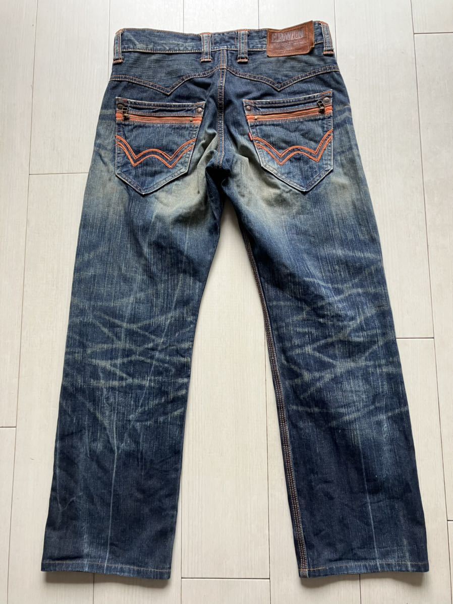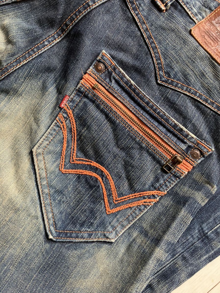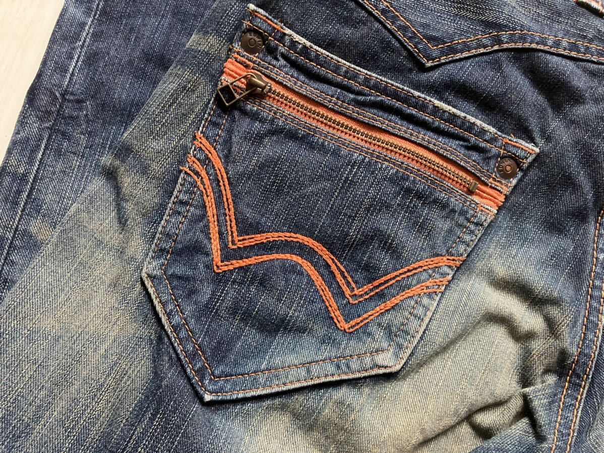 生地はくっきり縦落ちしており、オレンジステッチがデニムと相性良く、オールシーズン活躍できるかと思います。