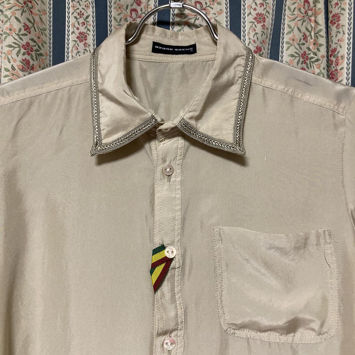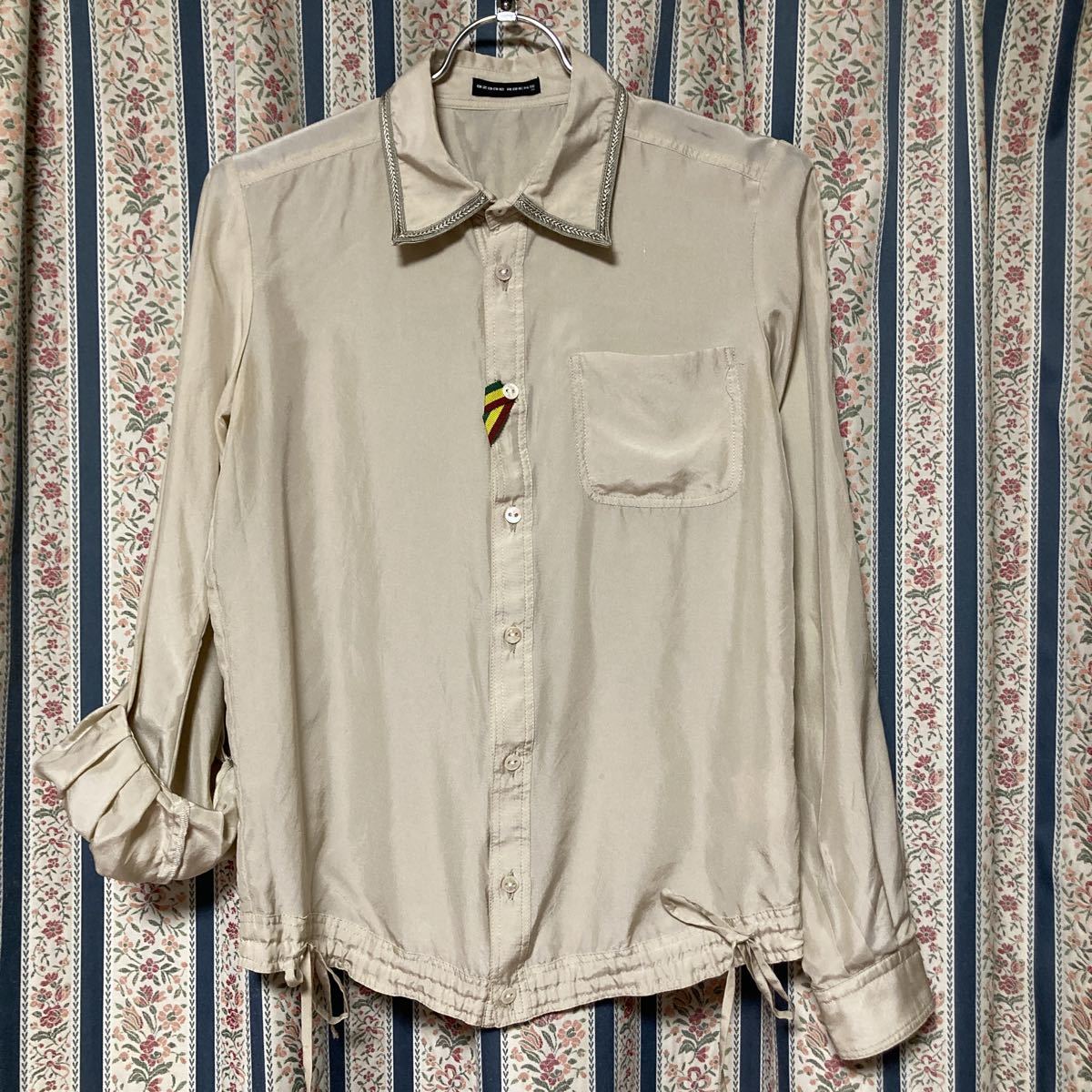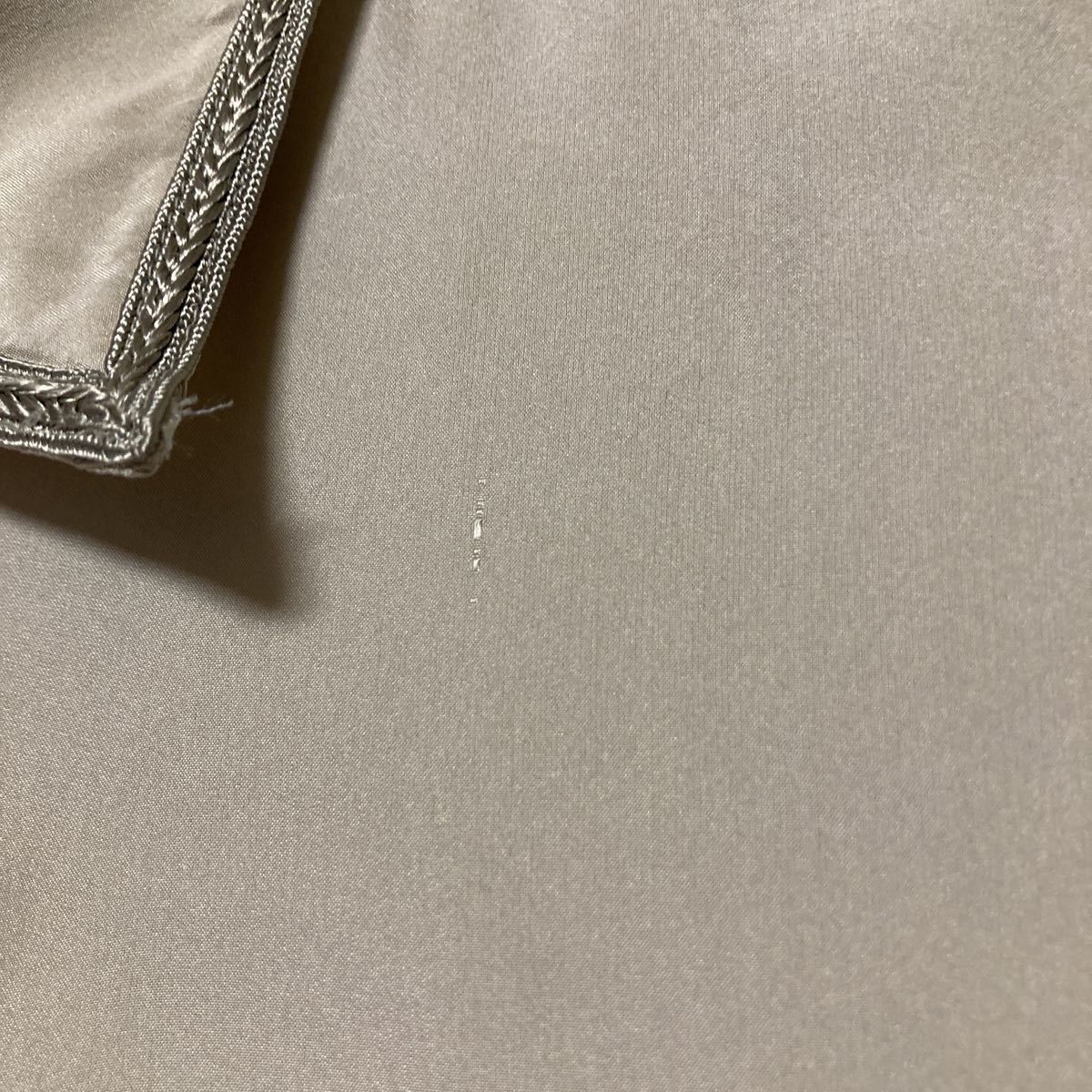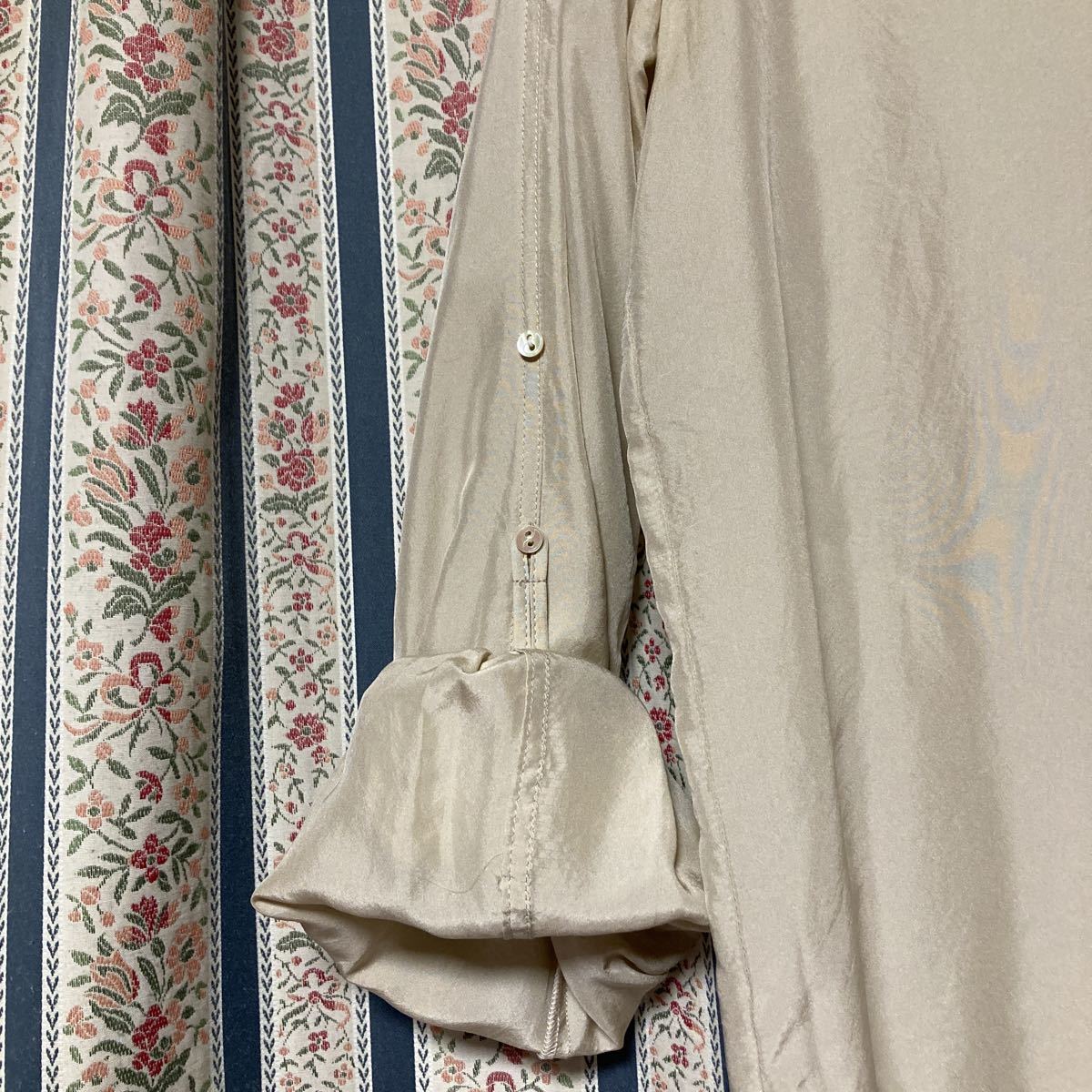 5回程度の着用で、左お腹の辺りにうっすら小シミあり。袖口の2個ついたボタンのうち、左のひとつが欠損しています。