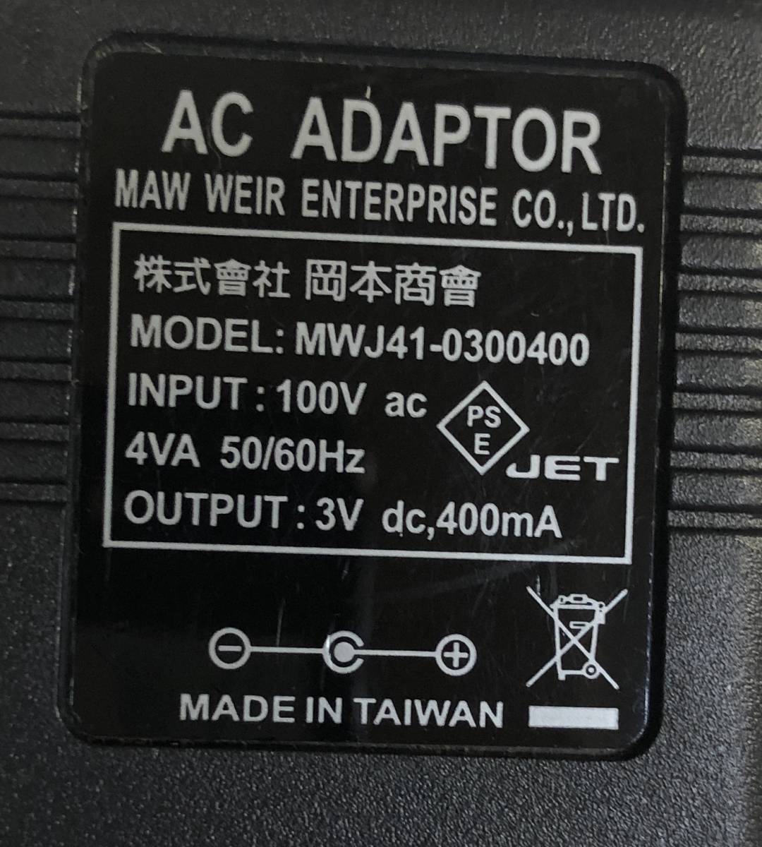 岡本 ACアダプタ MWJ41-0300400 3V 400mA