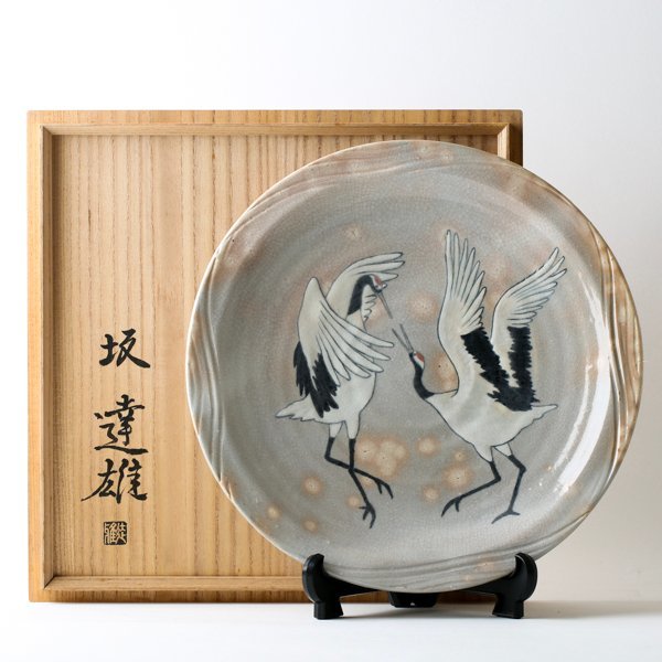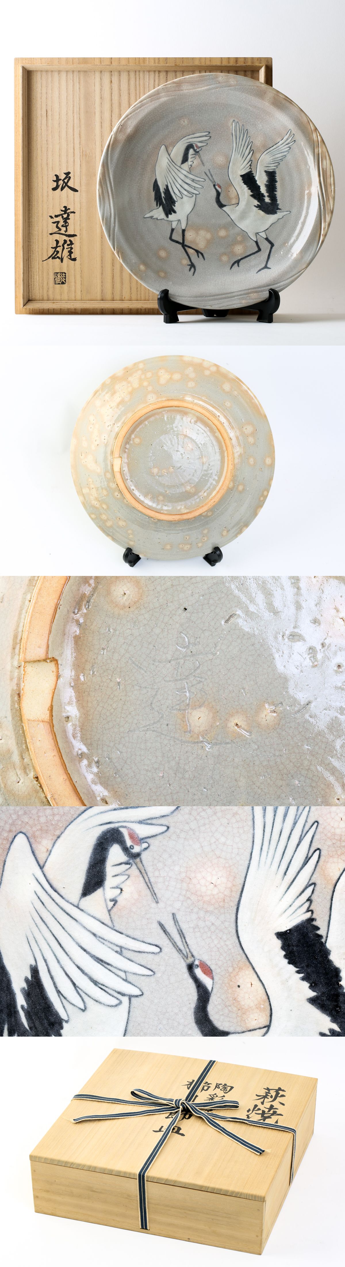 萩焼 坂達雄(十二世坂高麗左衛門)陶彩景 櫛目飾皿 共箱 中古になります。