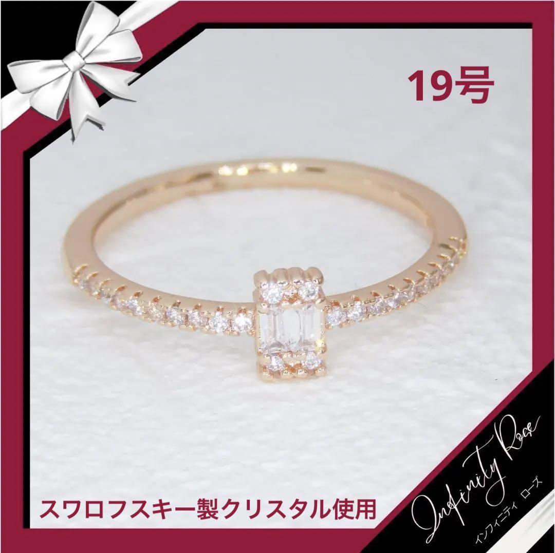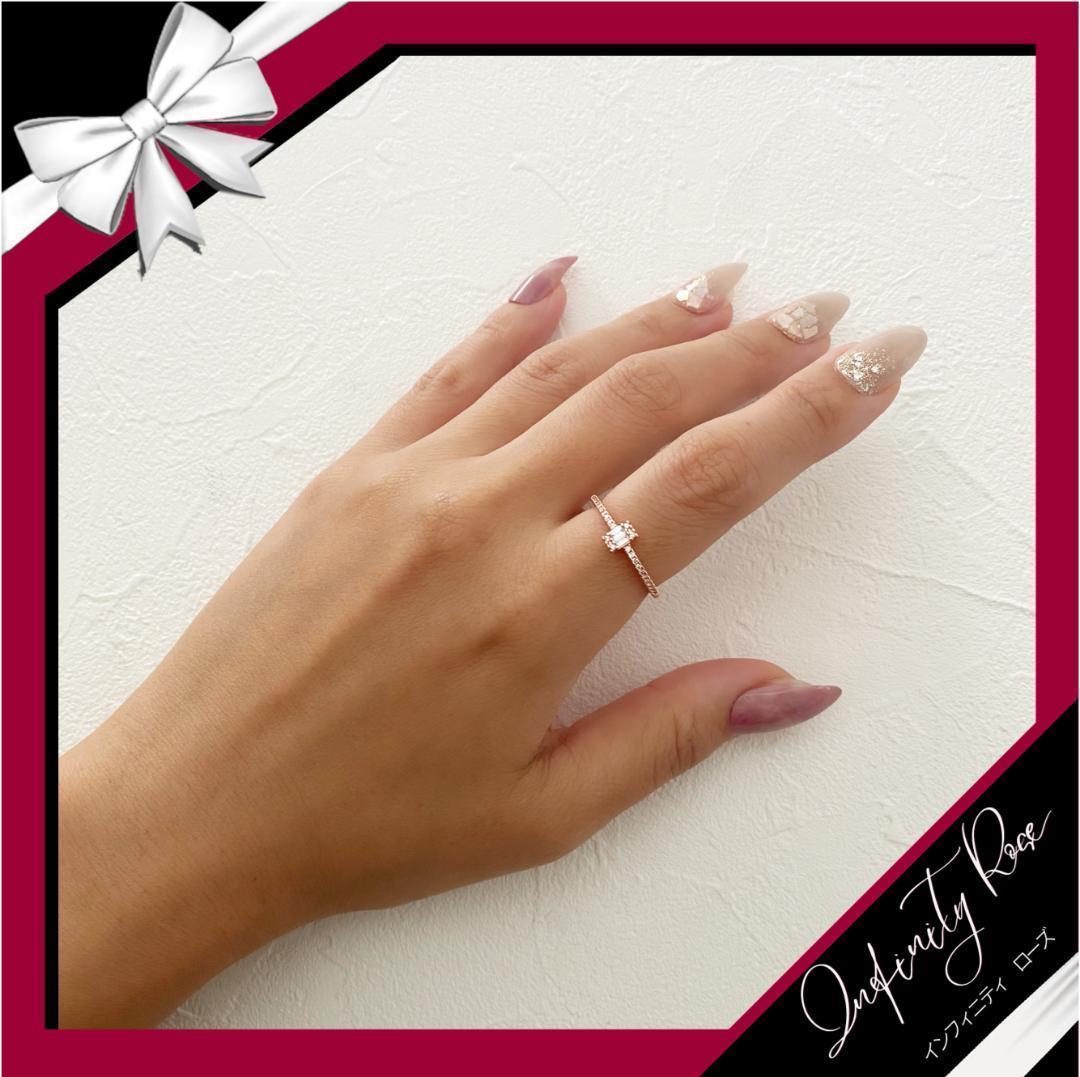 (R051P)19号 ピンクゴールドこだわり素敵すぎるスクエア細リング 爪留指輪 スワロフスキー製クリスタル使用