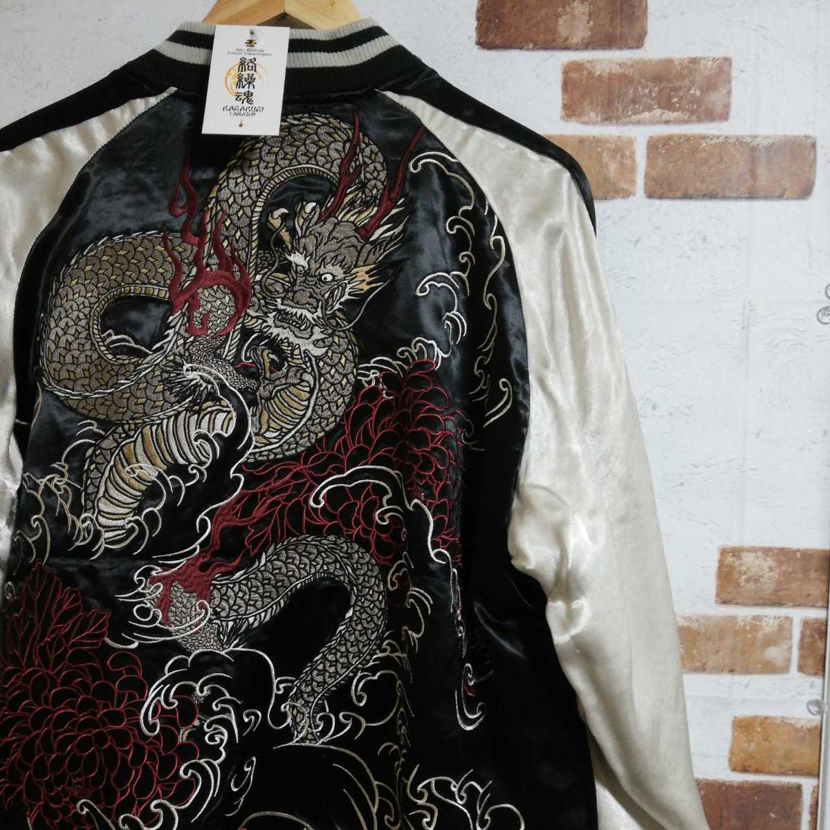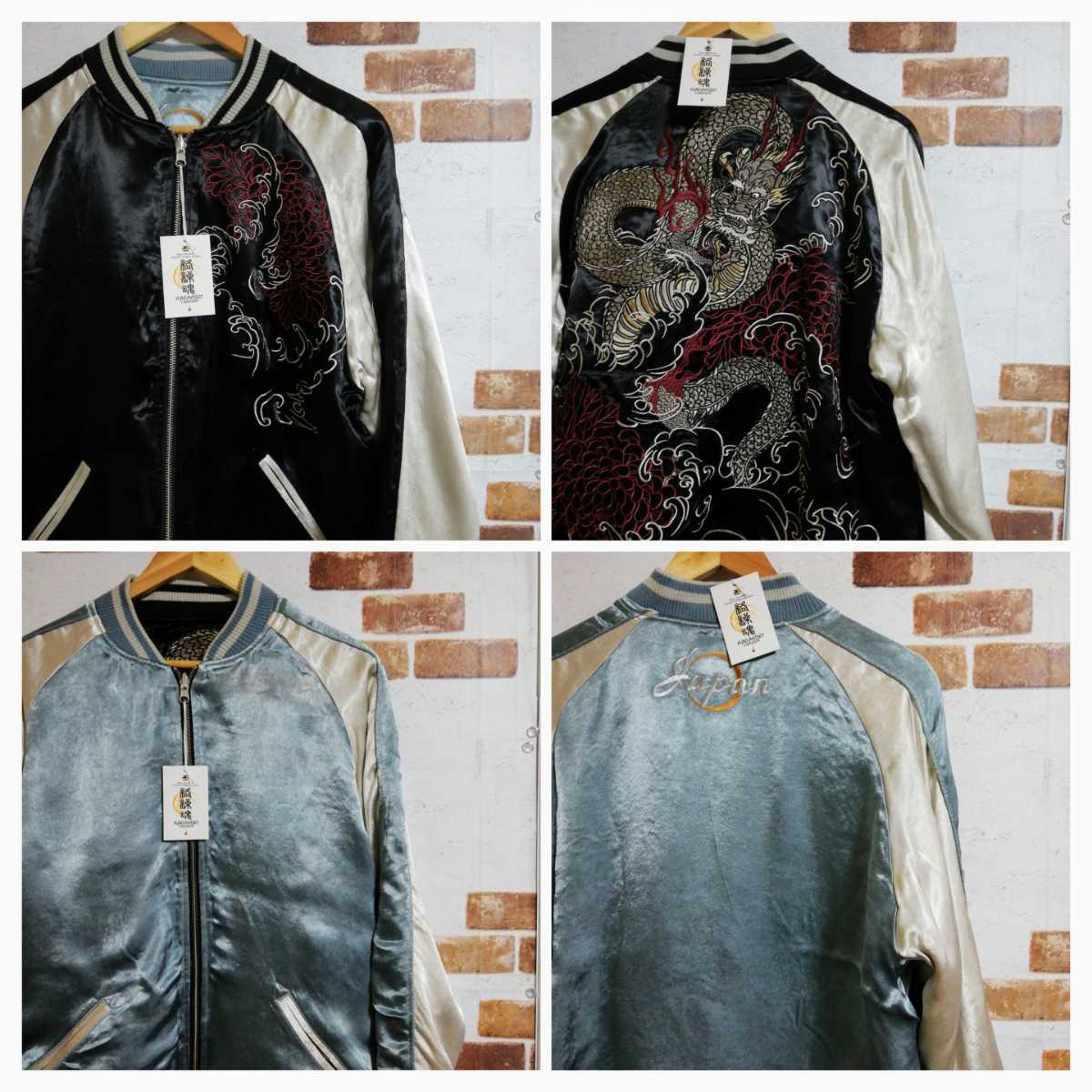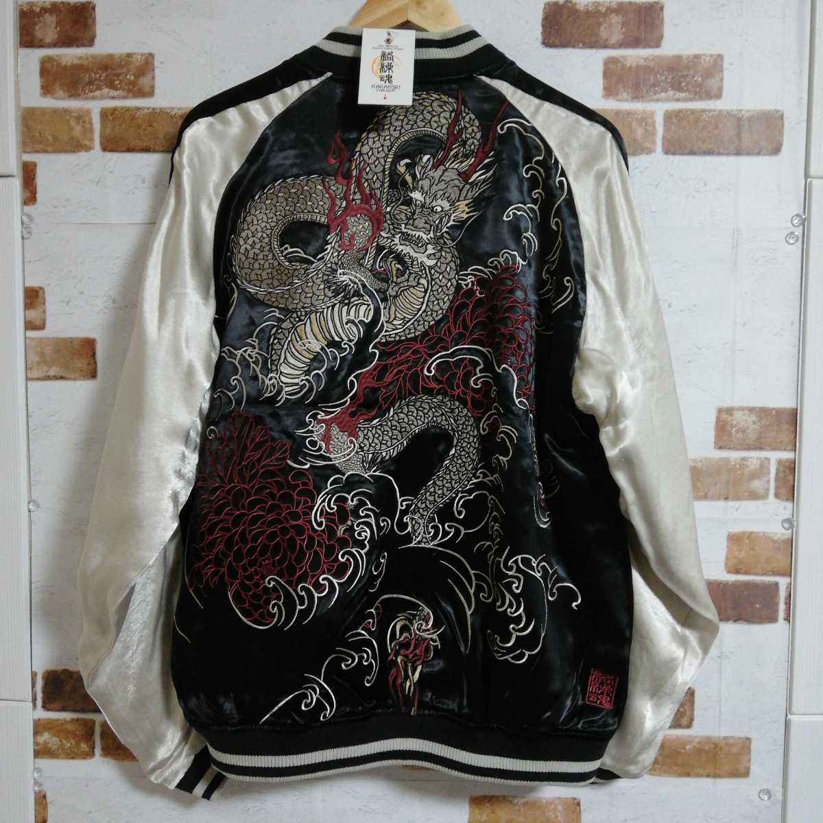 ◆片面は龍神の総刺繍、もう片面はシンプルなデザイン、生地は滑かなレーヨンとなっており最高級の一着です