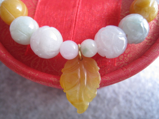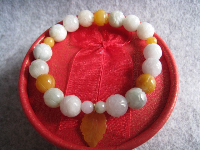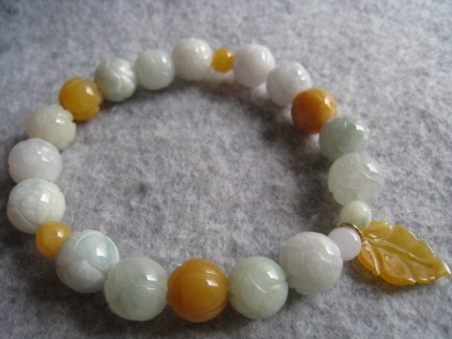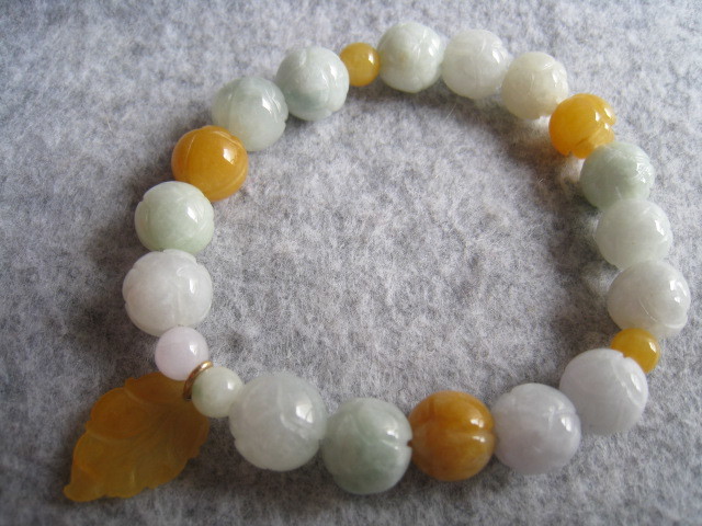 [SAMU]素敵!!天然ひすい翡翠珠9.5~10mm 花彫刻 ブレスレット★逸品!