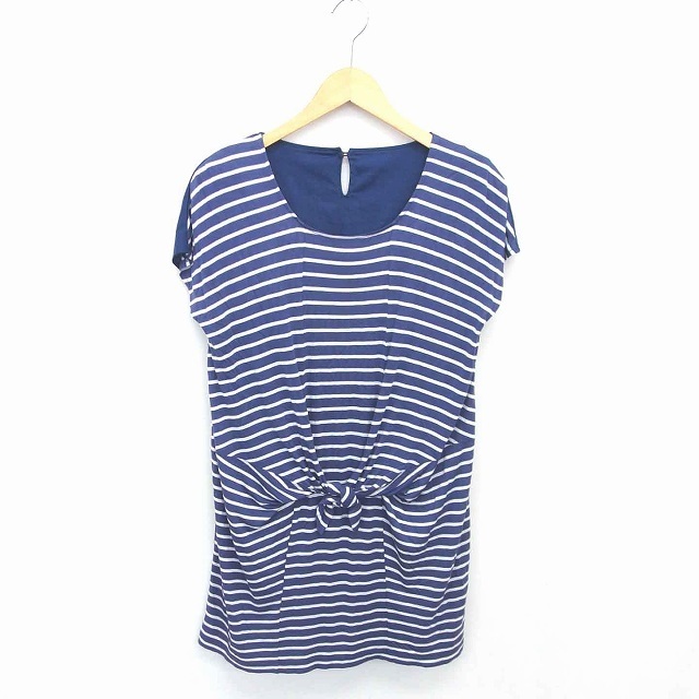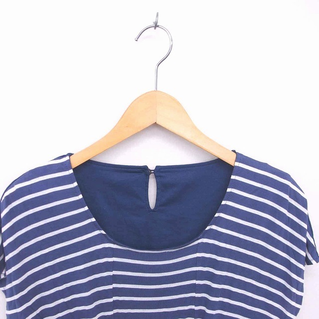 ルージュヴィフ Rouge vif ワンピース ひざ丈 ボーダー 丸首 プルオーバー 半袖 パープル ネイビー 紫 紺 /TT14 レディース