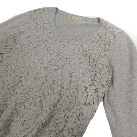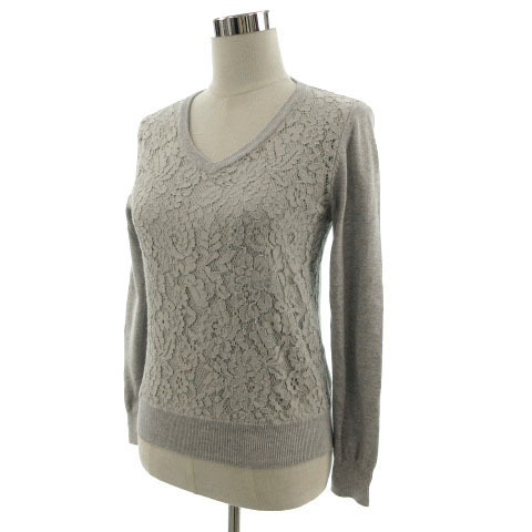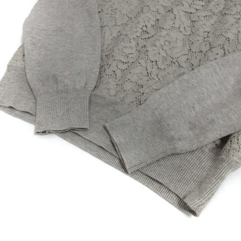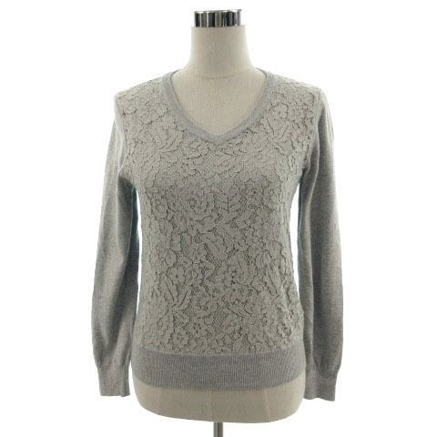 ビームスハート BEAMS HEART ニット セーター 長袖 Vネック 前身頃レース 切替え グレー レディース