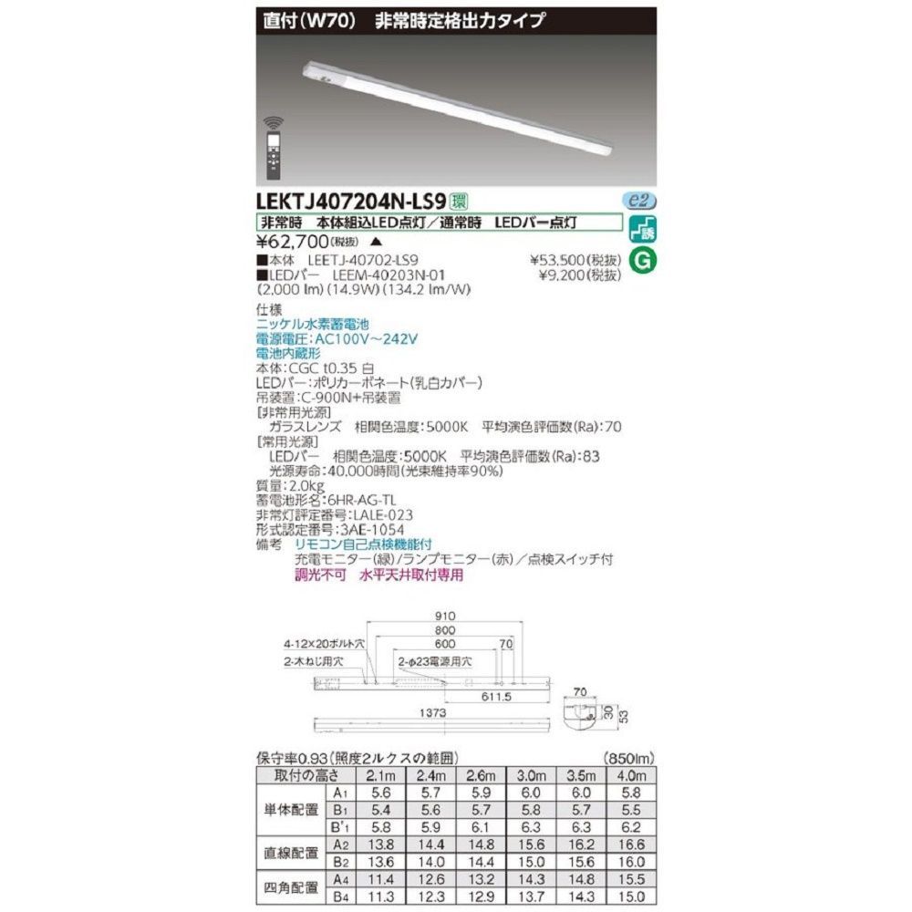 LEDベースライト 非常用照明器具 非常時定格出力タイプ 昼白色 調交付不可 19年製 LEKTJ407204NLS9