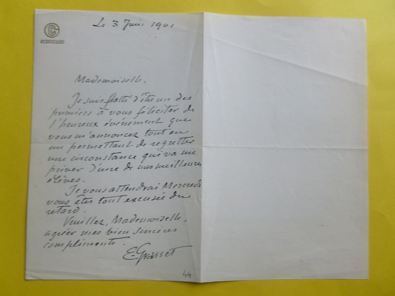 ★ アール・ヌーヴォーの巨匠 ウジェーヌ・グラッセ 自筆サイン入り手紙 1901年 | |||