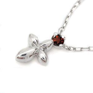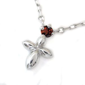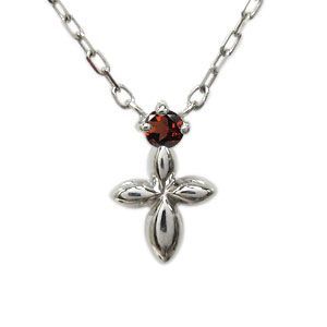 1月誕生石ガーネットを一粒使用した、18金製のクロス(十字架)モチーフプチネックレスです。